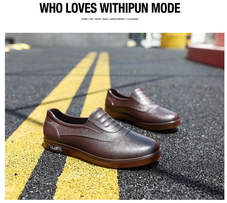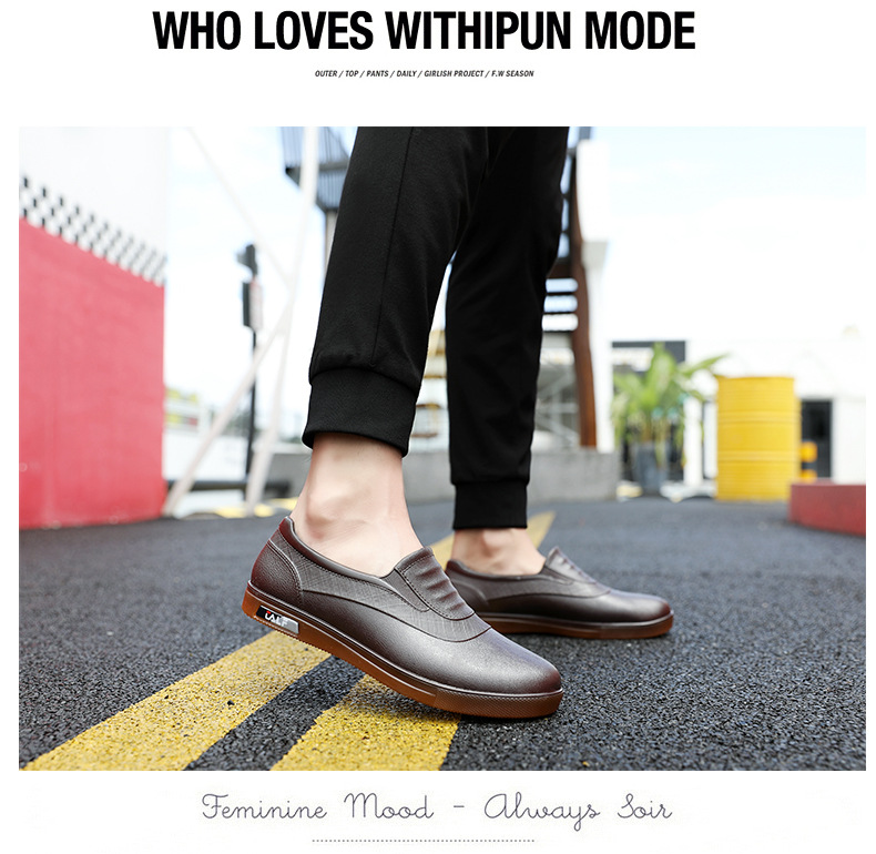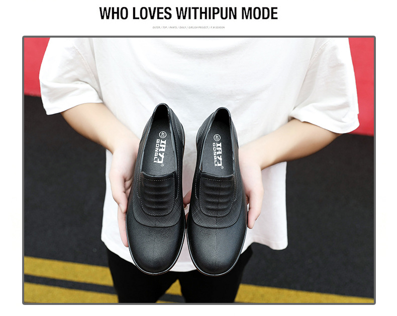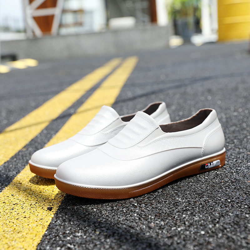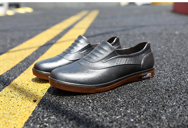 한국식 로우탑 레인 슈즈 남성용 세련된 얕은 입 쇠고기 바닥 물 신발 성인 로우 튜브 작업 미끄럼 방지 내마모성 고무 신발 커버스토어 가기