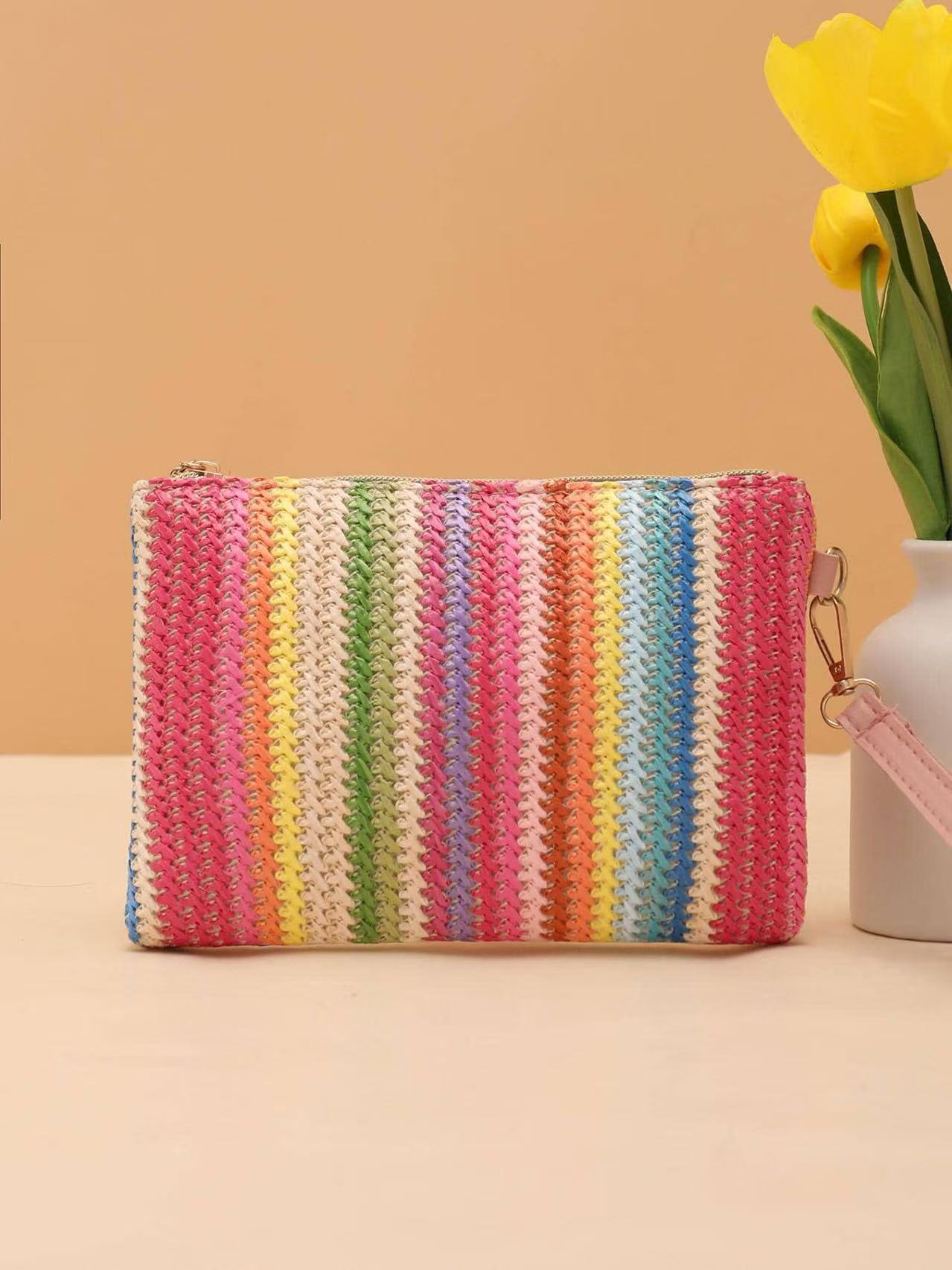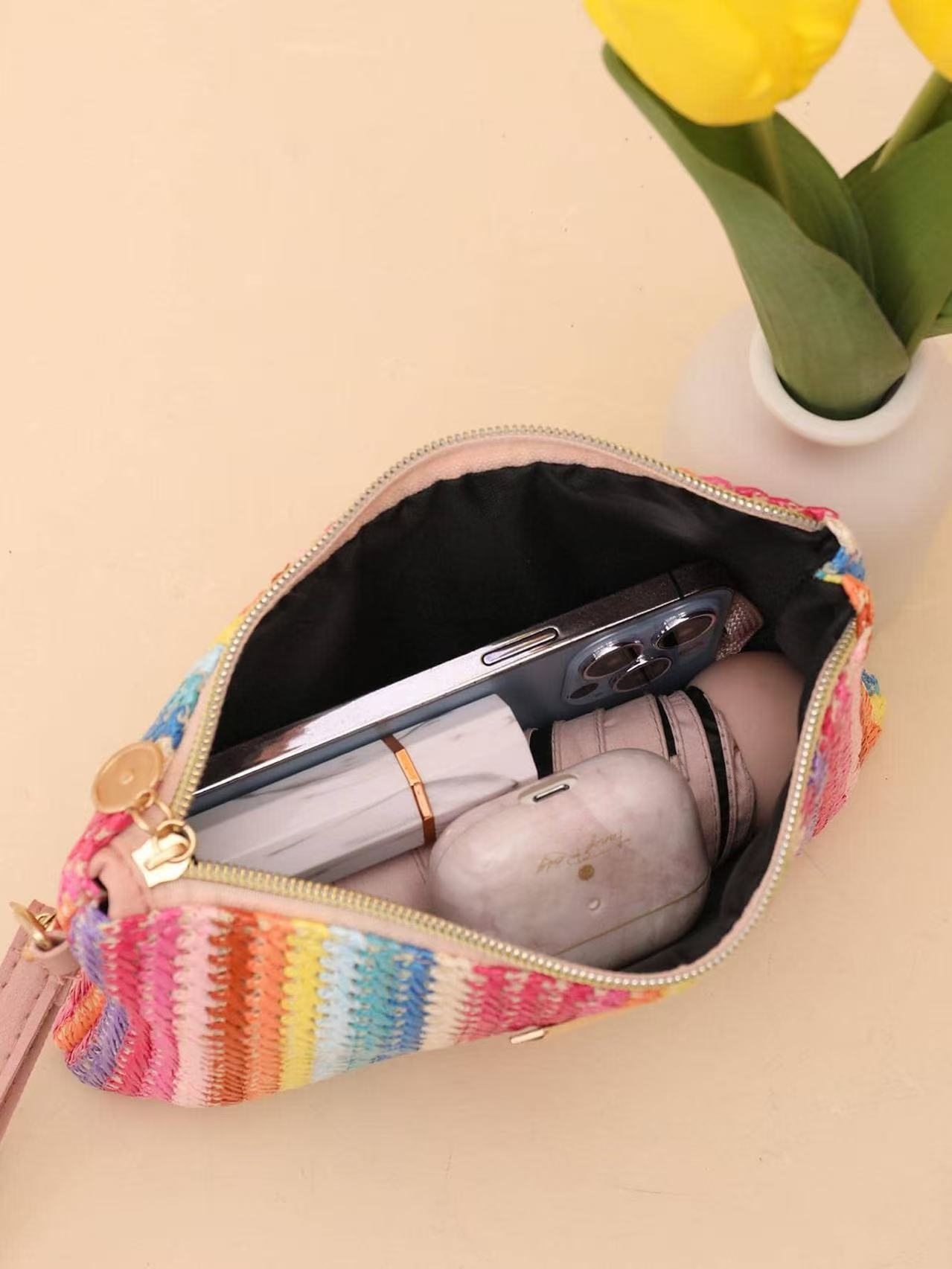 인터넷 연예인 유행 무지개 짠 가방 여자의 2023 여름 신상품 클러치 동전 지갑 작은 신선한 외국 스타일 여자의 가방