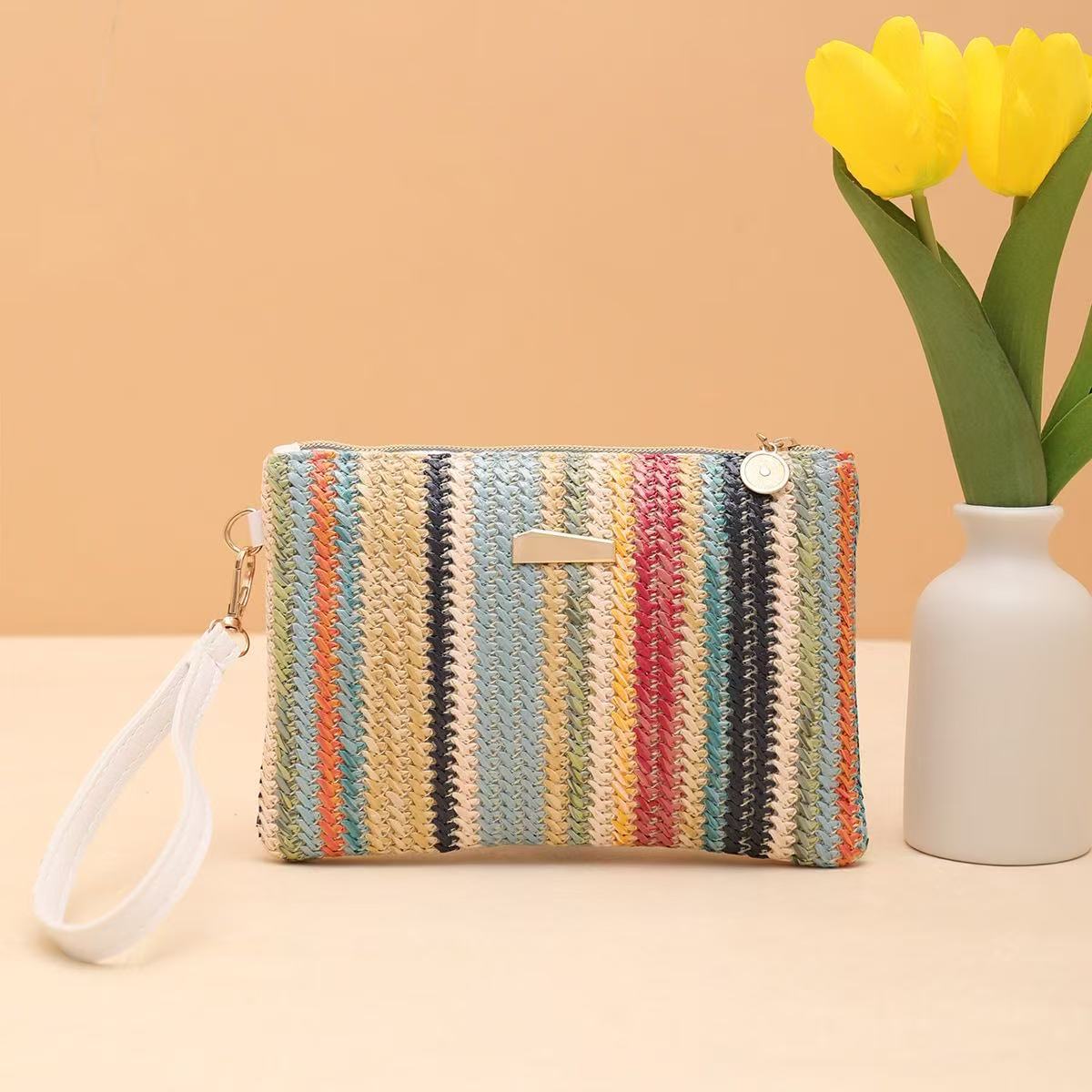 인터넷 연예인 유행 무지개 짠 가방 여자의 2023 여름 신상품 클러치 동전 지갑 작은 신선한 외국 스타일 여자의 가방스토어 가기
