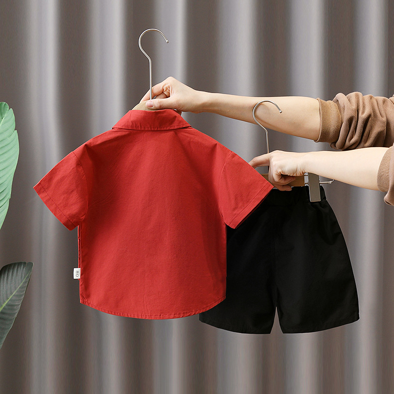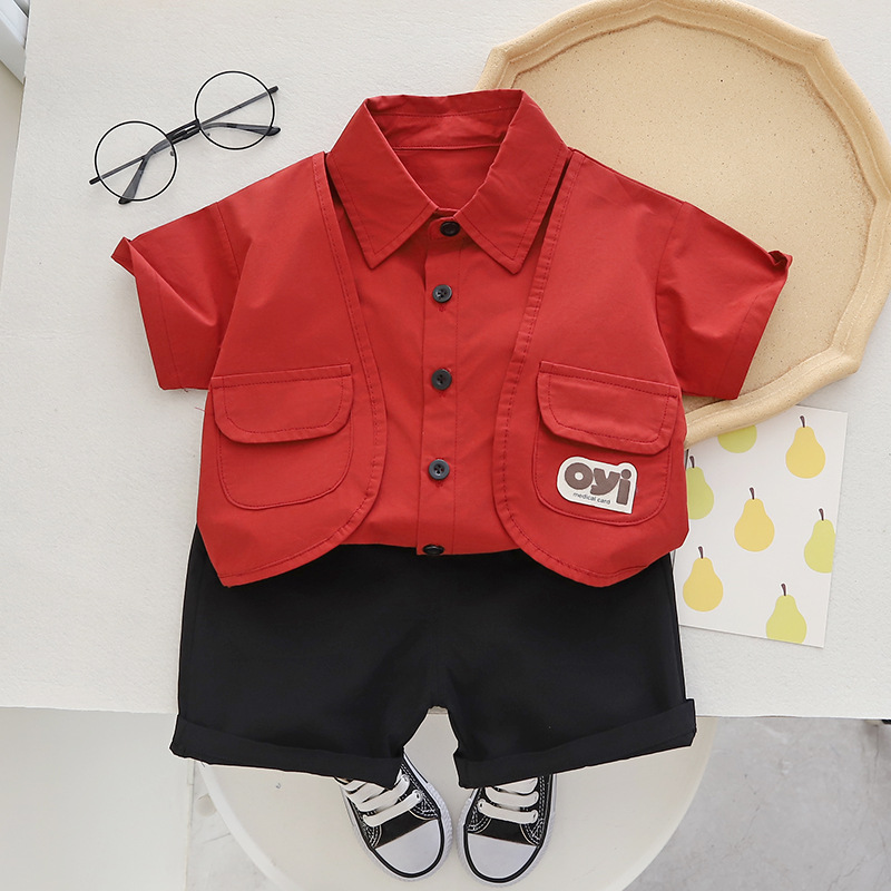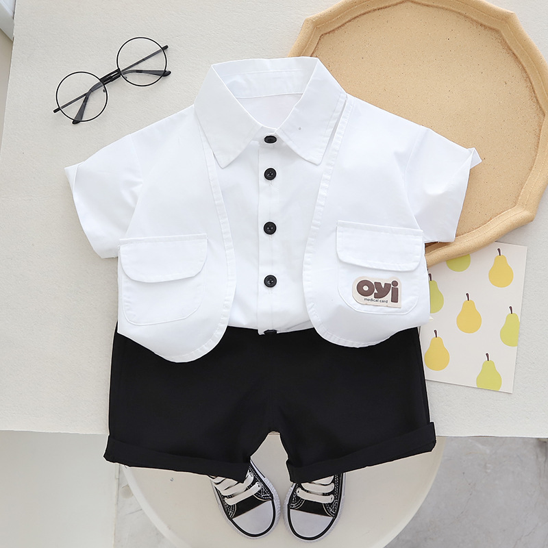 남아 여름 원피스 반팔 세트 2023 새로운 스타일 남아 아기 작업복 조끼 의류 어린이 여름 투피스 세트