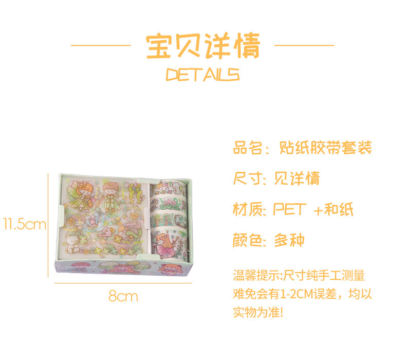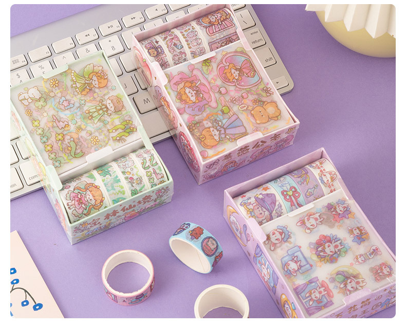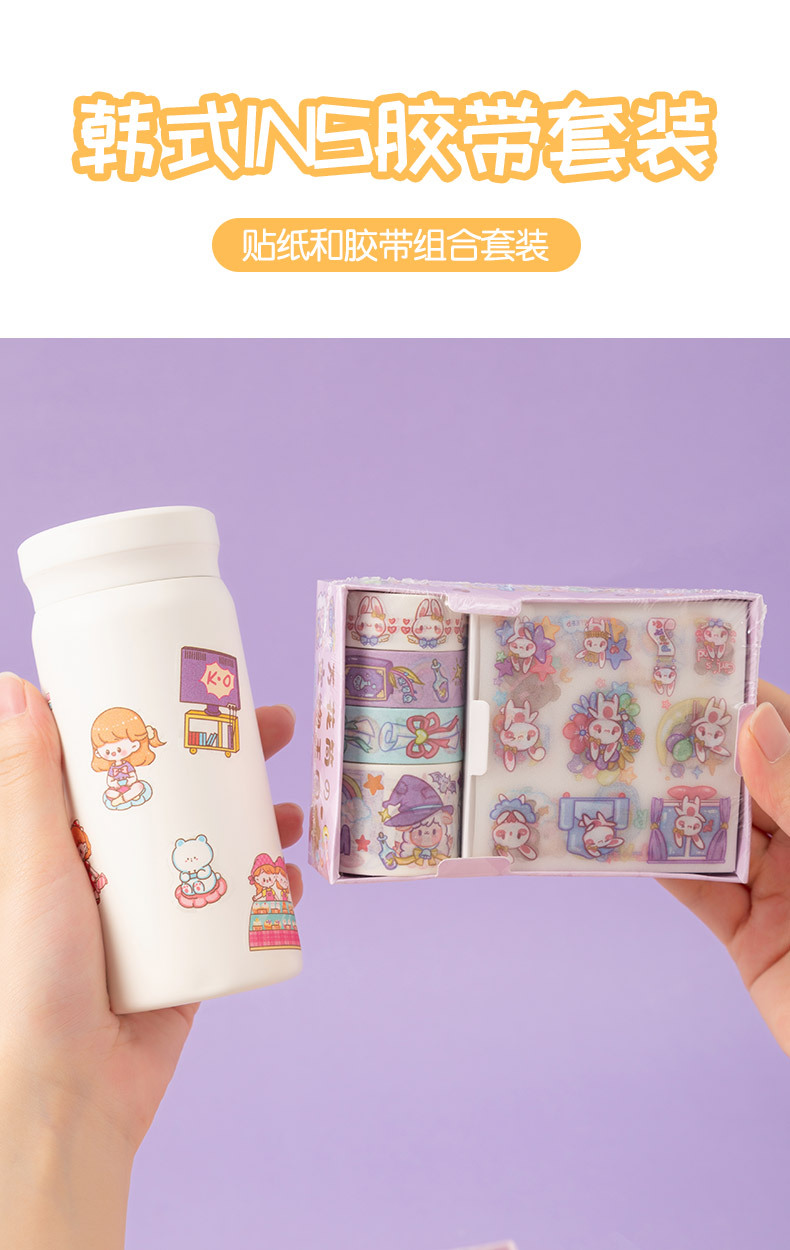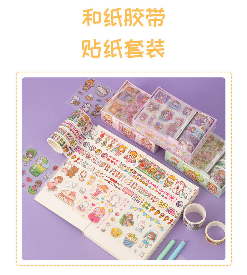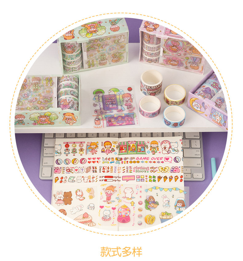 귀여운 테이프 스티커 선물 상자 세트 손 계정 신선한 재료 만화 스티커 세트 어린이 영화 스티커