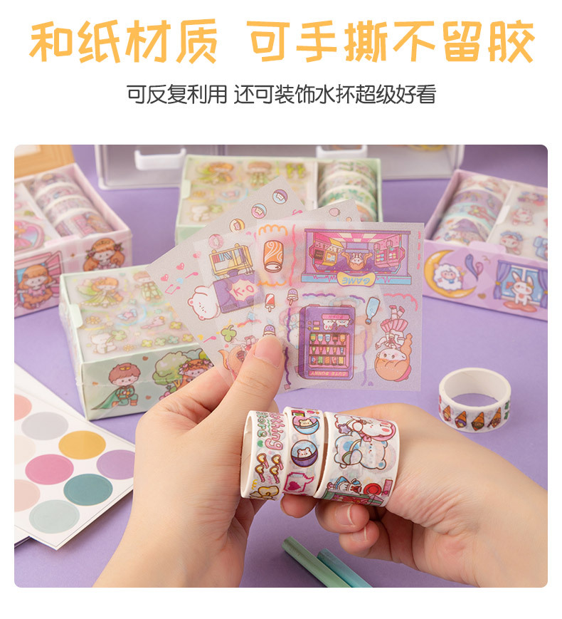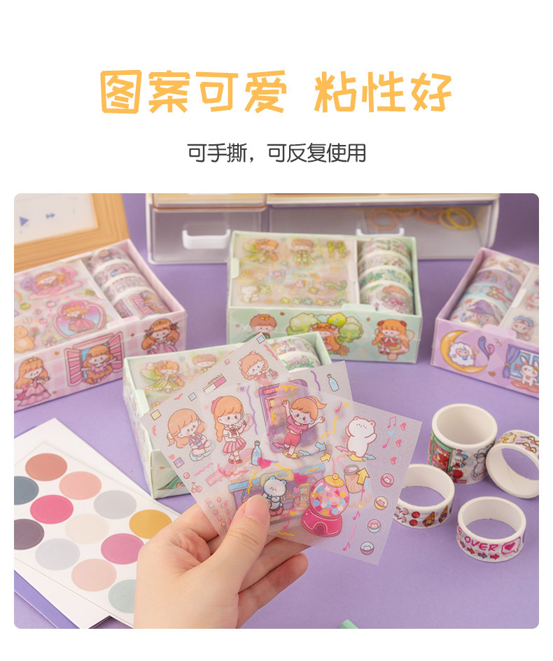 귀여운 테이프 스티커 선물 상자 세트 손 계정 신선한 재료 만화 스티커 세트 어린이 영화 스티커스토어 가기