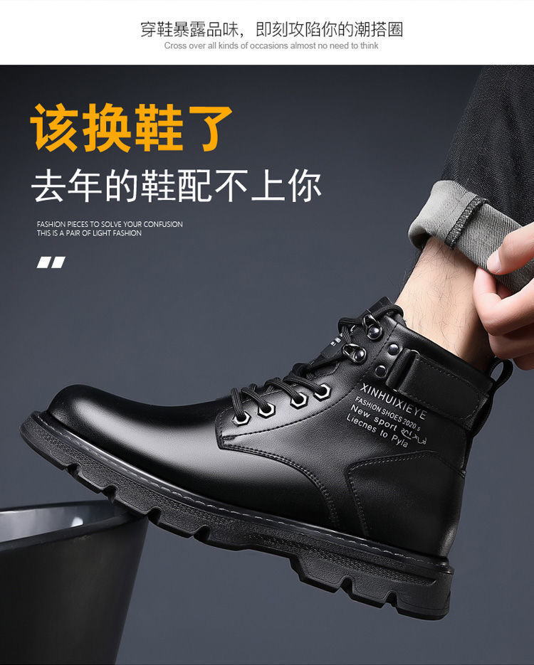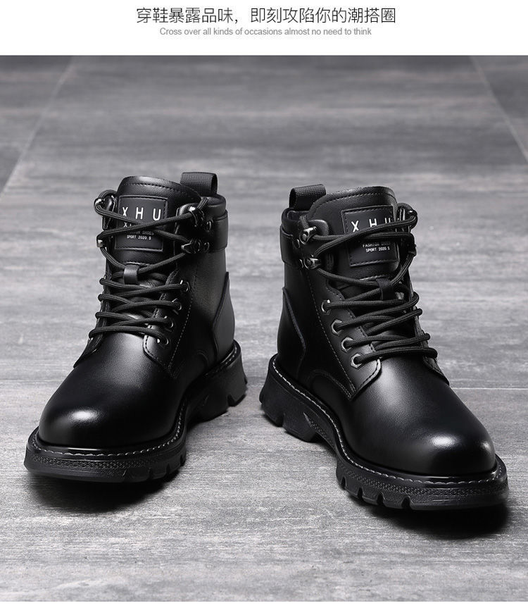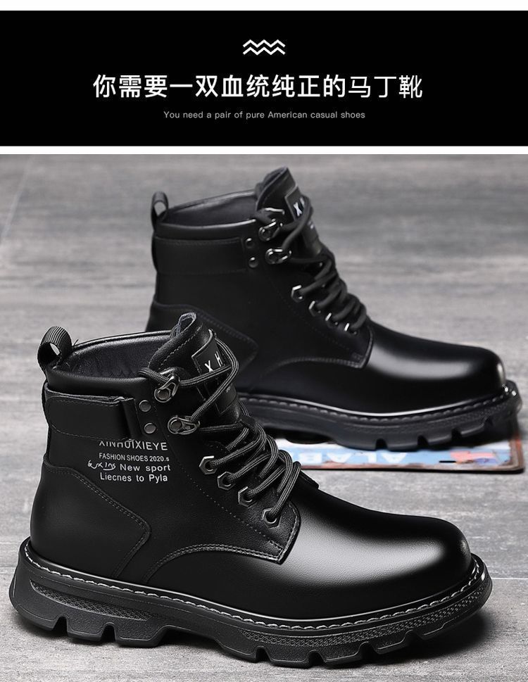 마틴 부츠 남성 겨울 벨벳 하이탑 영국 스타일 블랙 작업복 오토바이 가죽 부츠 캐주얼 면화 방한