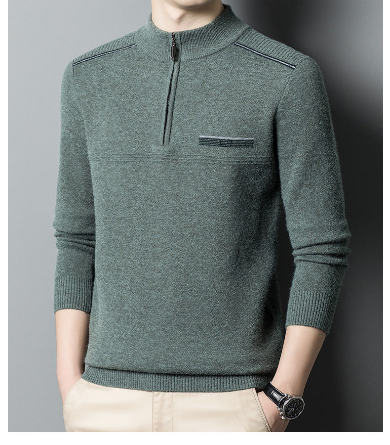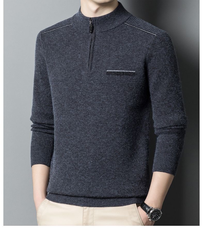 가을과 겨울 두꺼운 남자 울 스웨터 하프 터틀넥 지퍼 터틀넥 캐주얼 플러스 사이즈 베이스 니트 스웨터