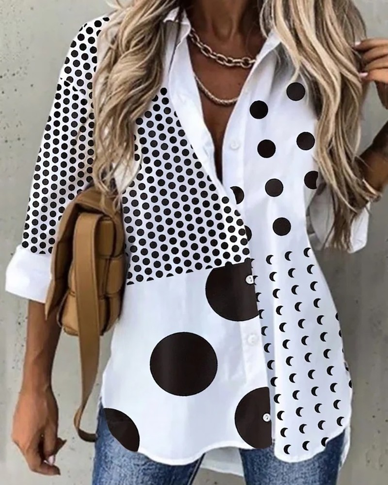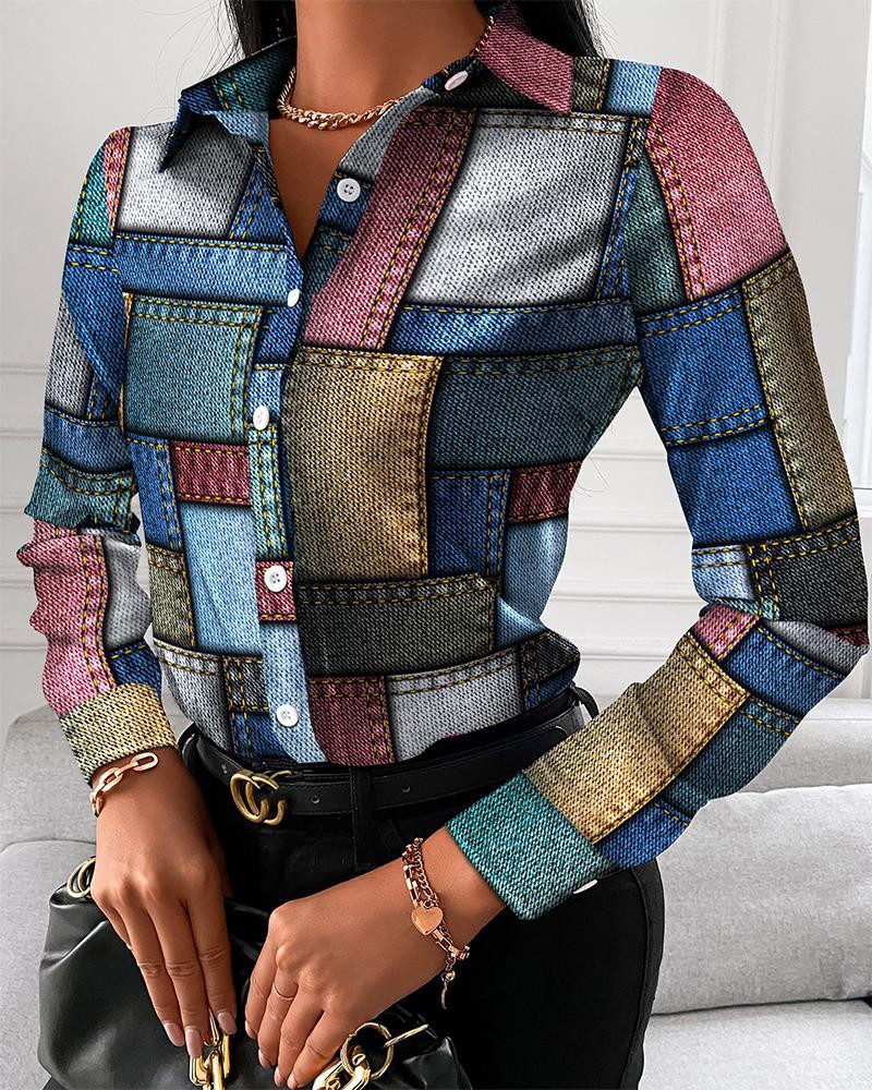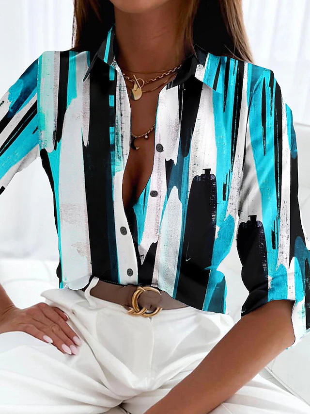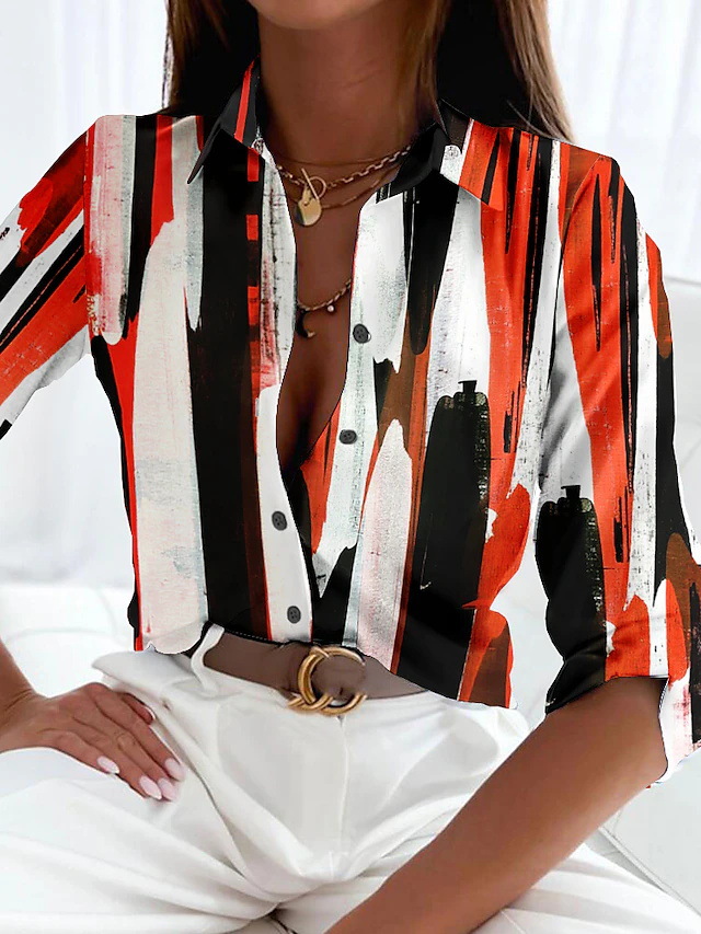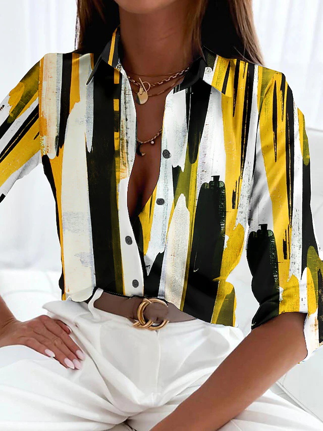 2023 디자인 센스 틈새 타이 다이 스트라이프 긴팔 셔츠 여성용 라펠 버튼 가을 예술적 게으른 스타일 여성 탑스토어 가기