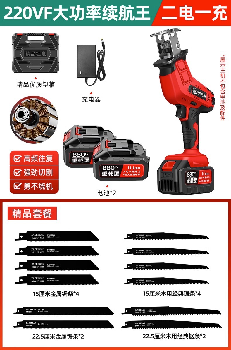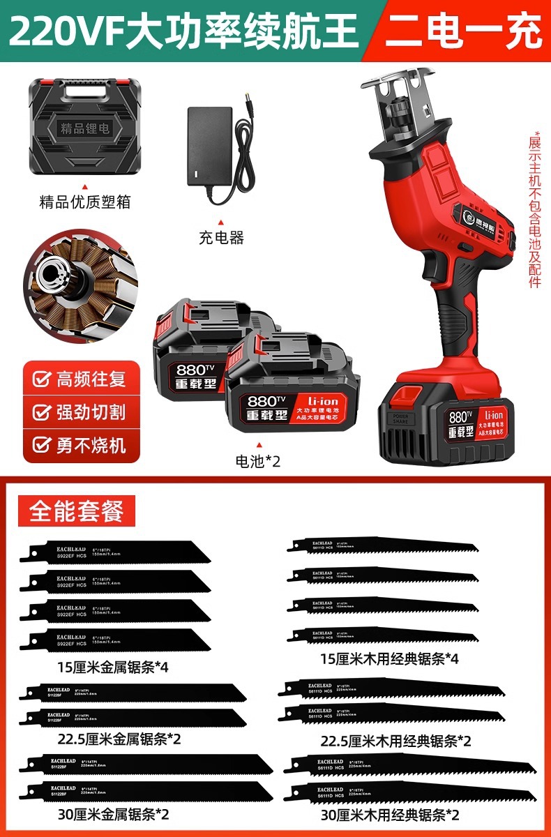 크로스보더 리튬전지 왕복톱 충전식 소형 전기톱 칼톱 가정용 야외 휴대용 벌목 리튬 고효율 절단