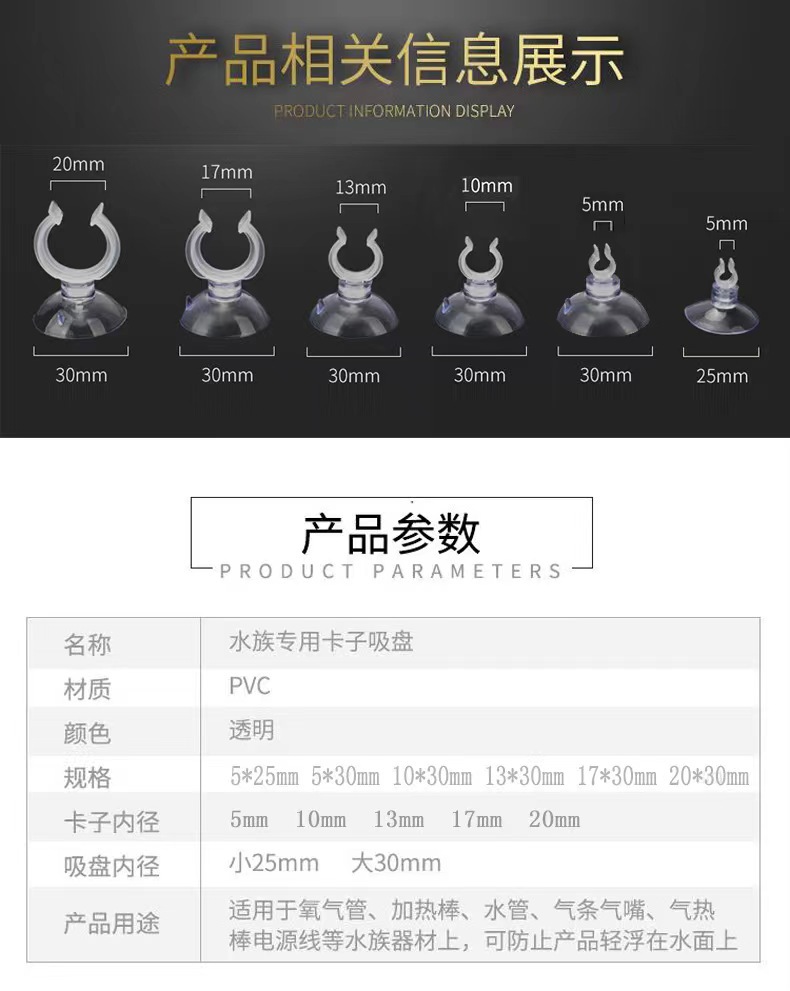 수족관 액세서리 수족관 분할 산소 튜브 부드러운 흡입 컵 기관 흡입 컵 가열봉 흡입 컵 투명 와이어 고정 흡입 컵