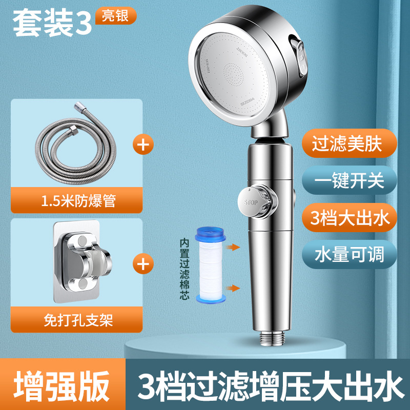 필터 가압 3 단 샤워 노즐 슈퍼 샤워 헤드 욕실 빗물 히터 가압 스프레이 욕조