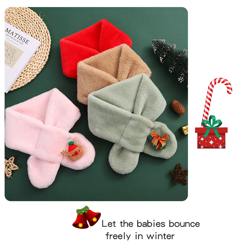 어린이 크리스마스 스카프 겨울 두꺼운 따뜻한 어린이 선물 스카프 봉제 만화 아기 귀여운 학생 스카프스토어 가기