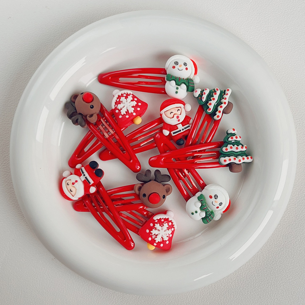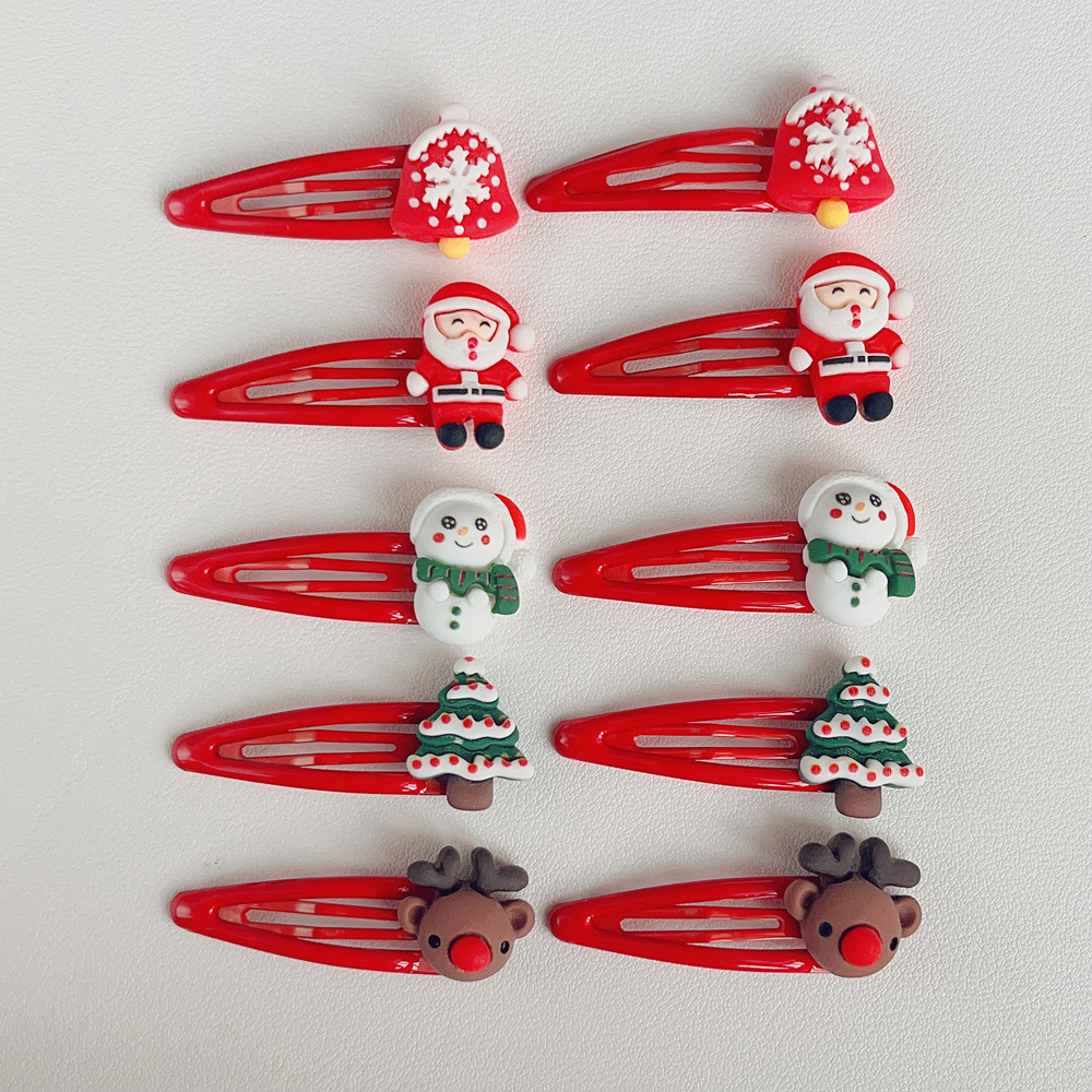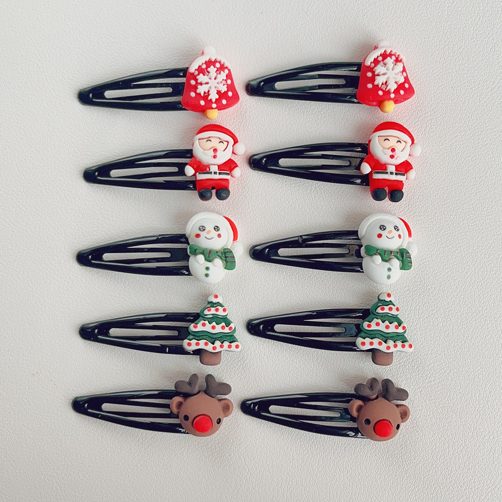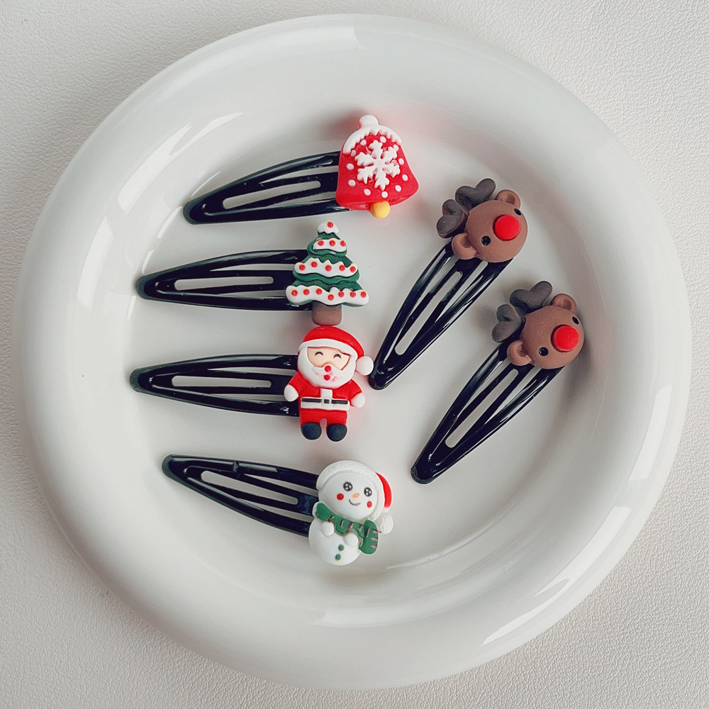 크리스마스 BB 클립 머리핀 만화 귀여운 산타 클로스 머리핀 엘크 눈사람 소녀 사이드 클립 클립 헤어 액세서리
