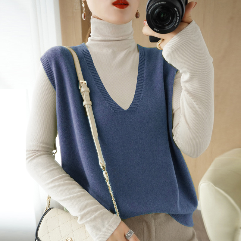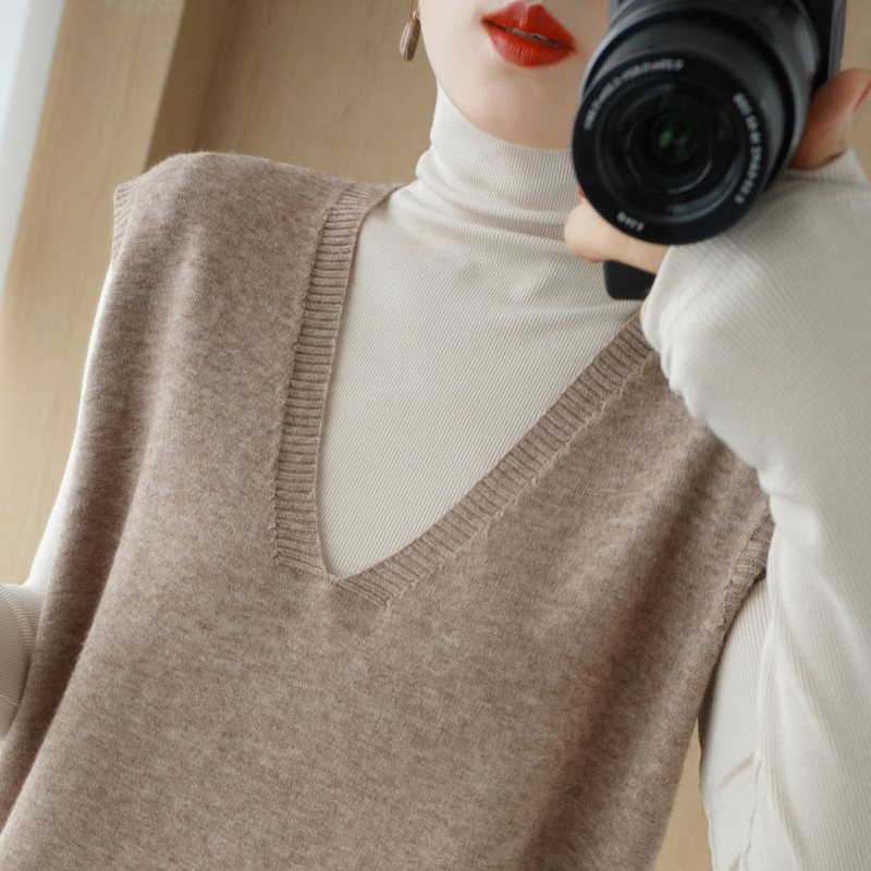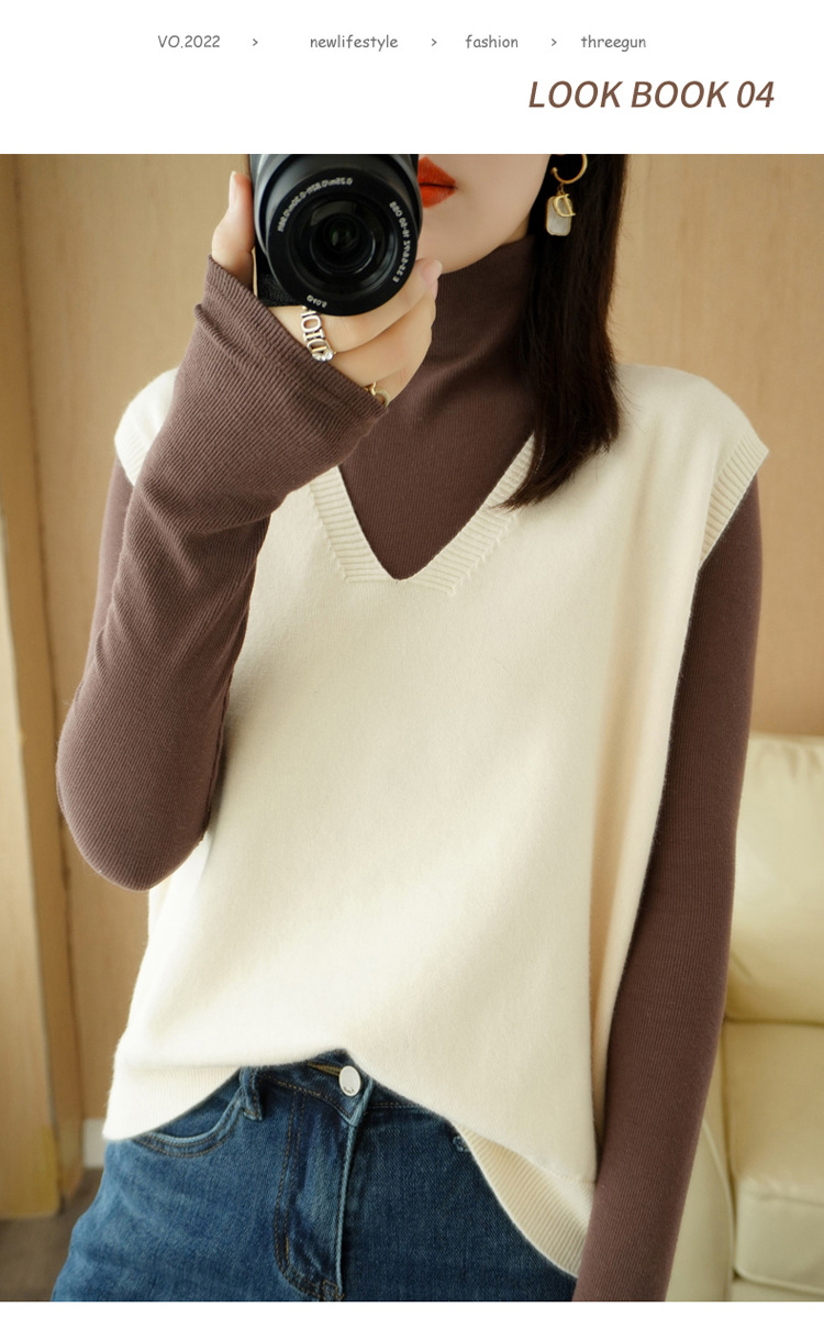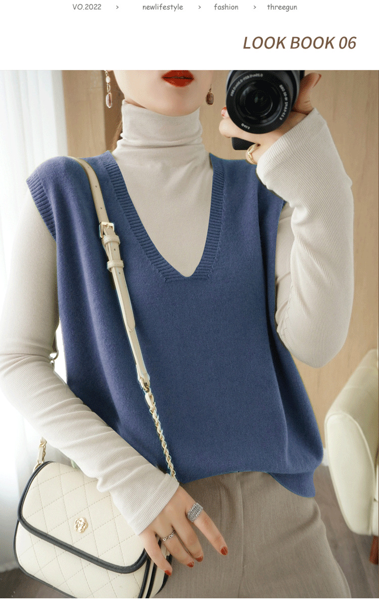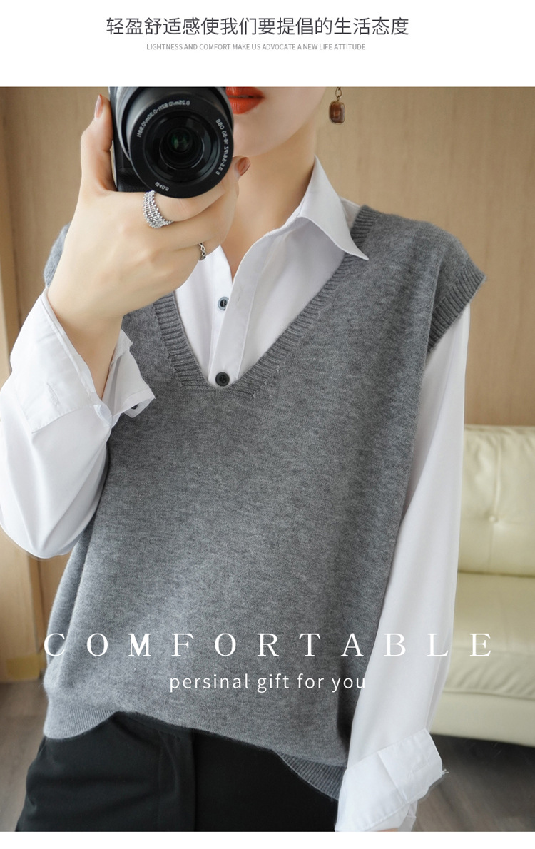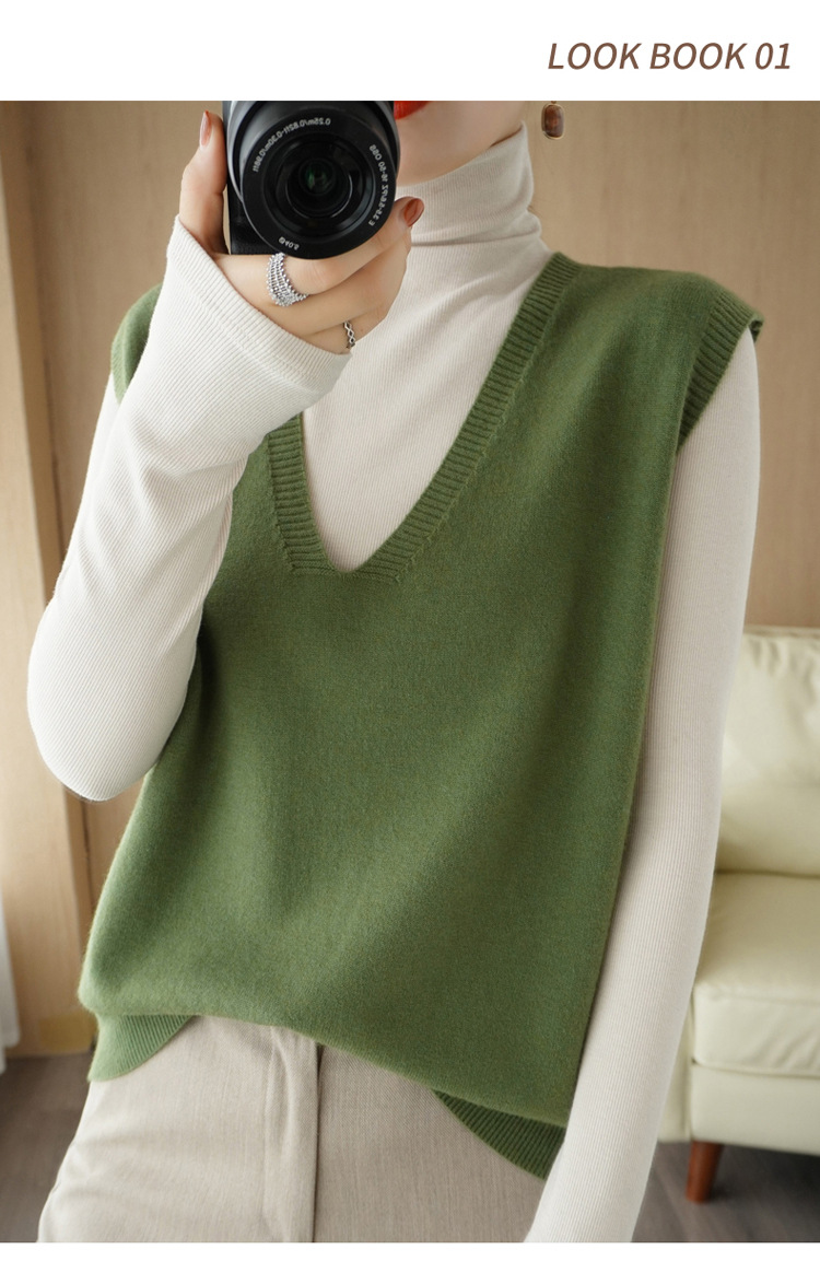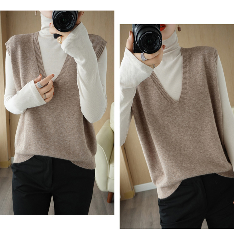 스웨터 조끼 여성 v 넥 느슨한 겉옷 가을, 겨울 새로운 민소매 바닥 조끼 슬리밍 조끼 스웨터스토어 가기