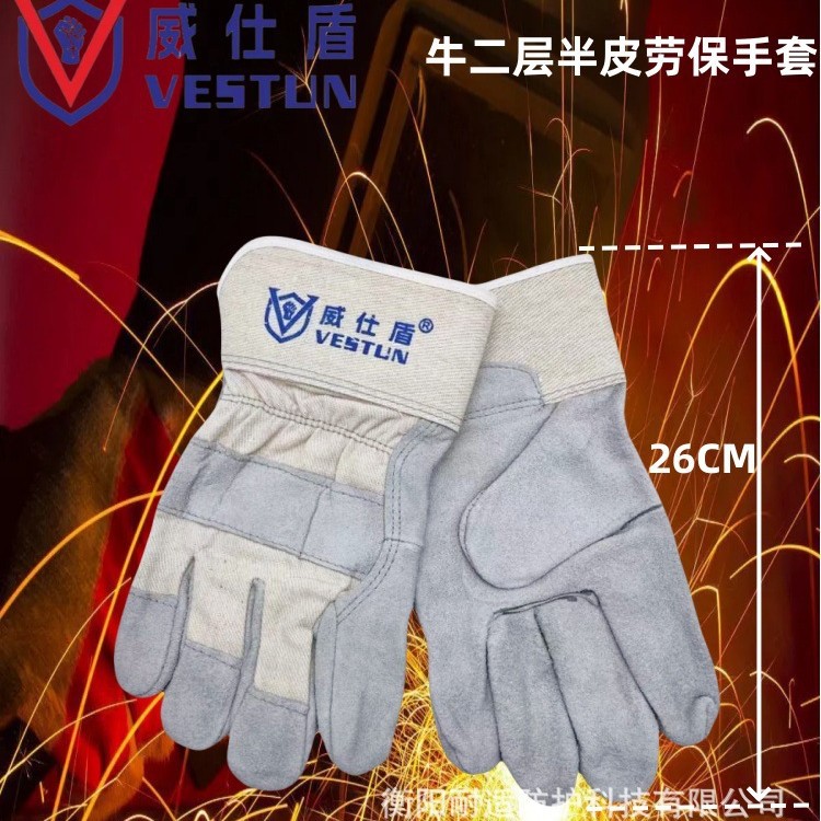 Weishidun G-2215 접착 소 2 층 가죽 절반 가죽 노동 보호 용접기 장갑 공장 도매 절단 방지 노동 보호스토어 가기