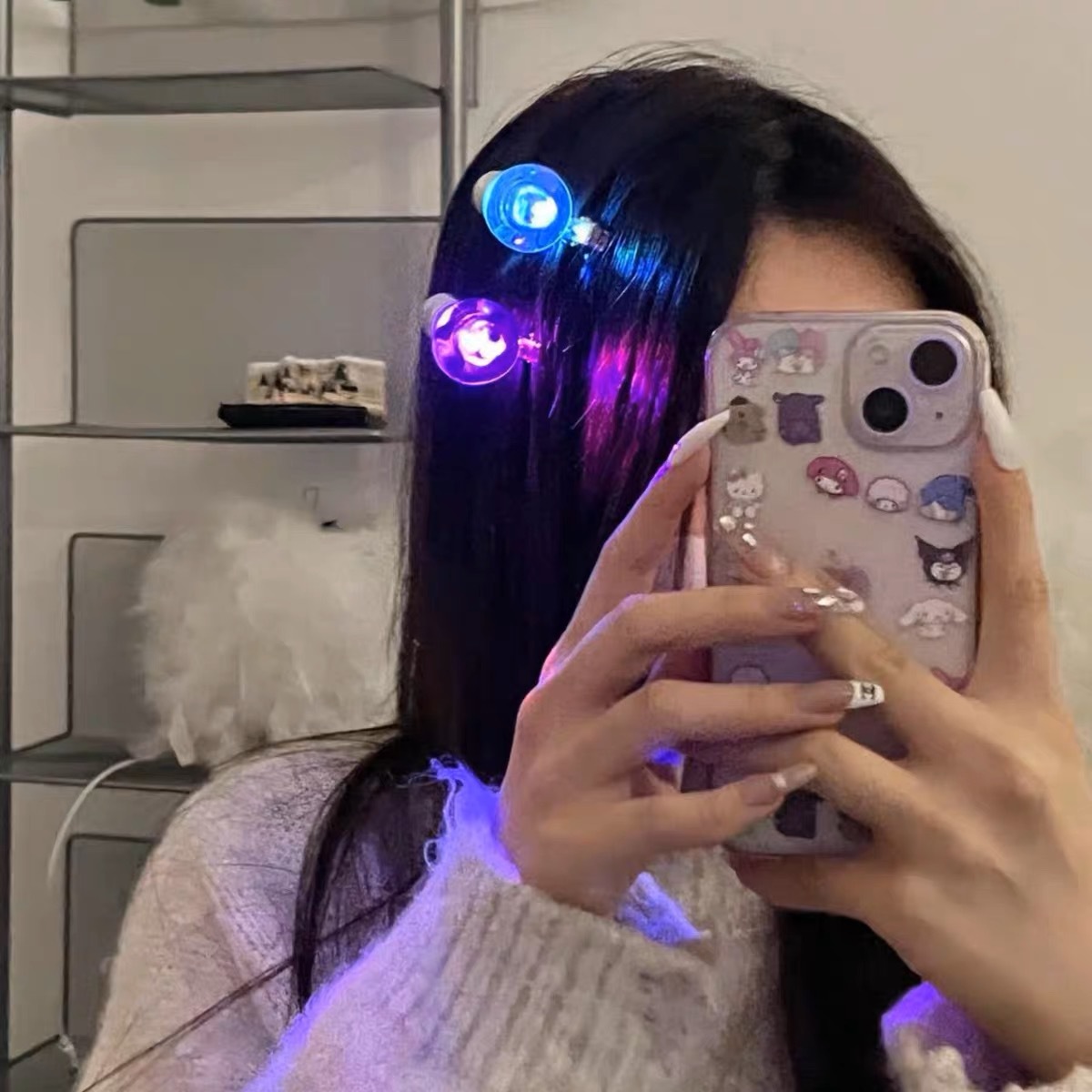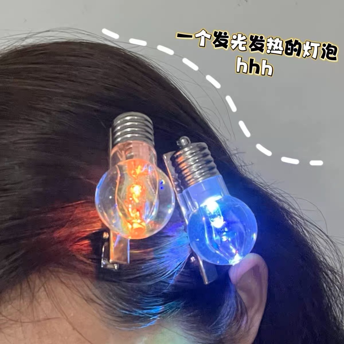 재미있는 전기 전구 머리핀 글로우 헤어 액세서리 시뮬레이션 전구 머리핀 색상 변경 앞머리 사이드 클립 학생 헤어 액세서리스토어 가기