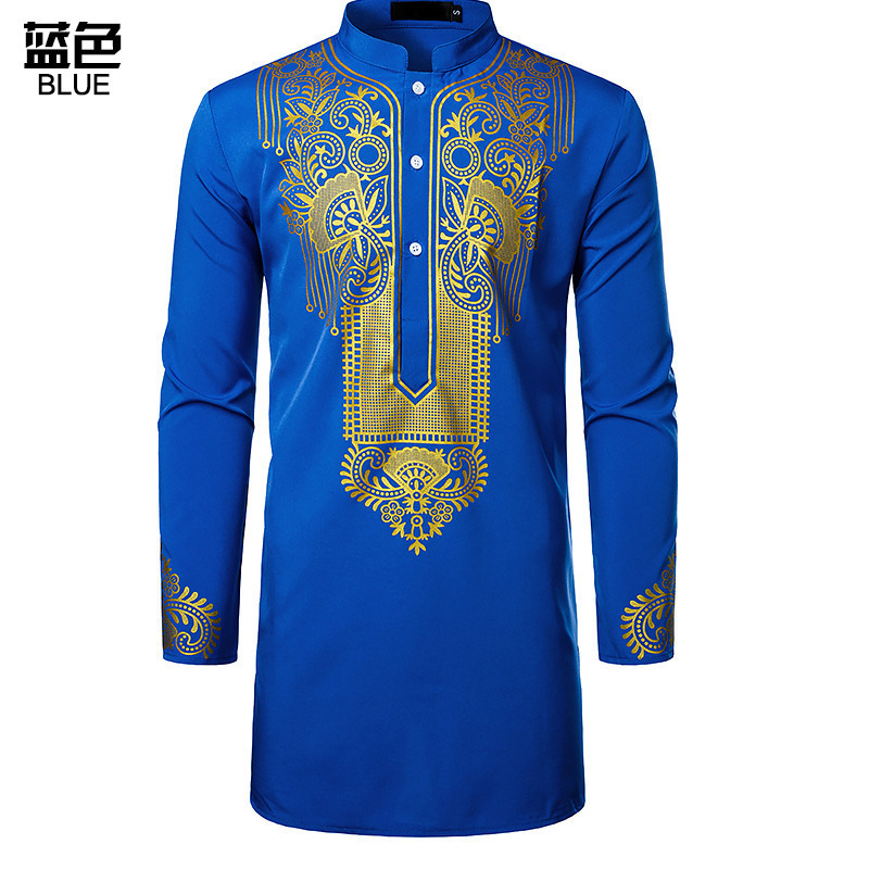국경 간 대외 무역 풀오버 남성 캐주얼 패션 브론징 셔츠 토템 롱 셔츠 이슬람 스트레이트 셔츠