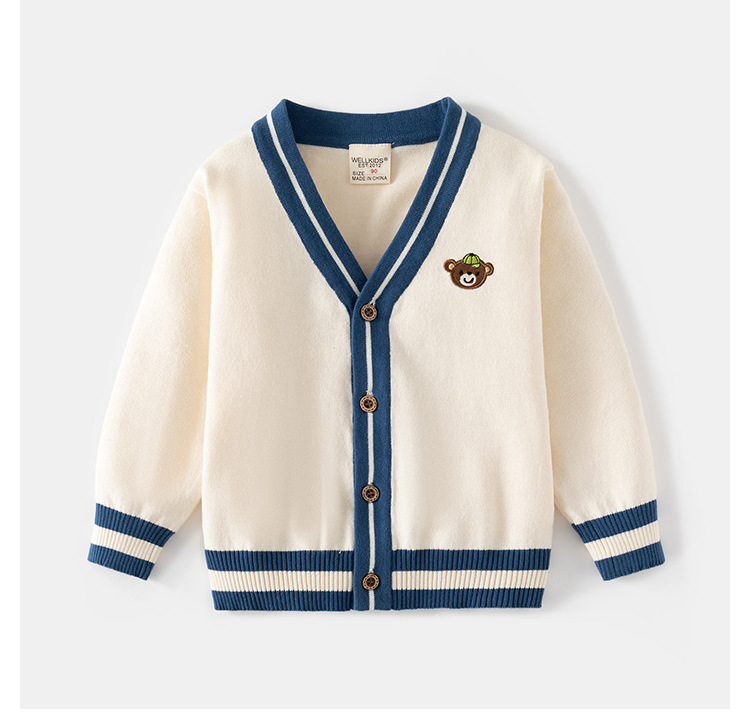 어린이 스웨터 2025 가을 새로운 소년 양모 카디건 아기 v 넥 자수 한국 스타일 아동 의류 탑 도매