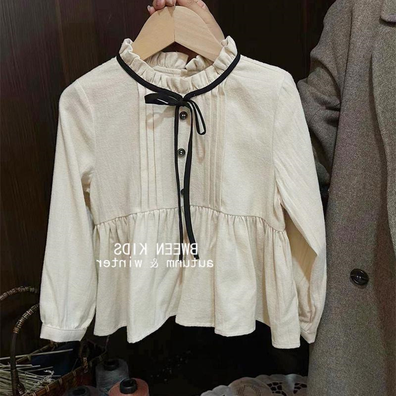 여자 캐주얼 긴팔 셔츠 아동 의류 봄 2021 새로운 어린이 한국 스타일 다목적 셔츠 패션 솔리드 컬러 탑스토어 가기