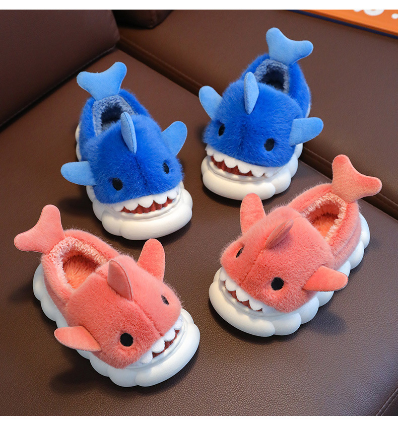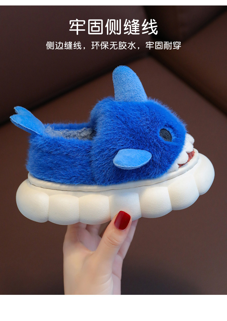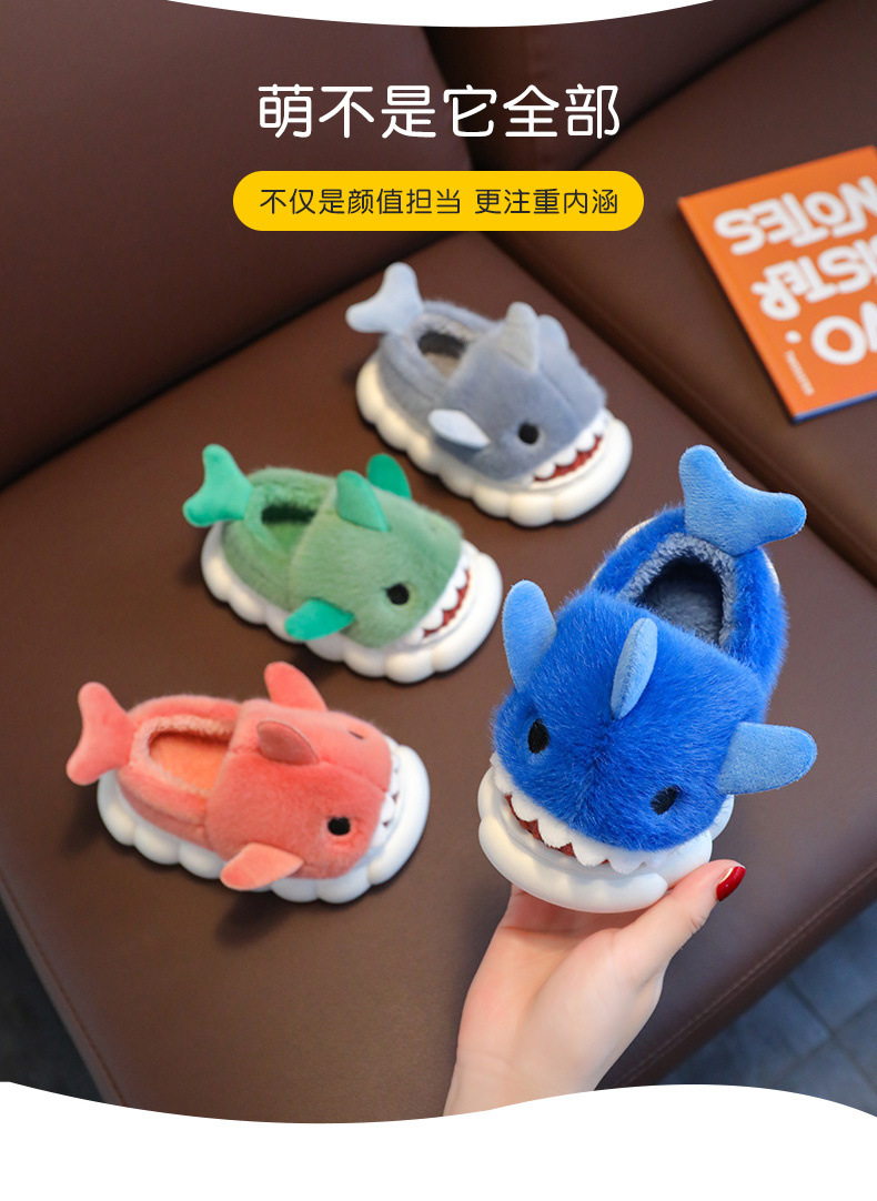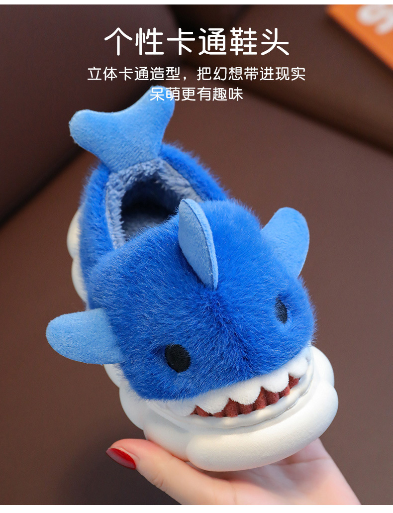 면 슬리퍼와 2023 상어 어린이 가방 새로운 스타일 소년 홈 미끄럼 방지 만화 소녀 소년 면화 신발 겨울
