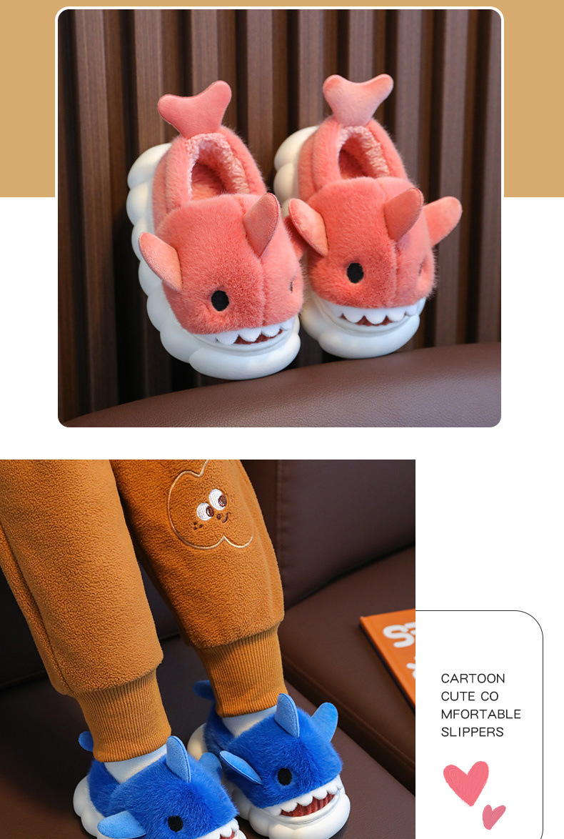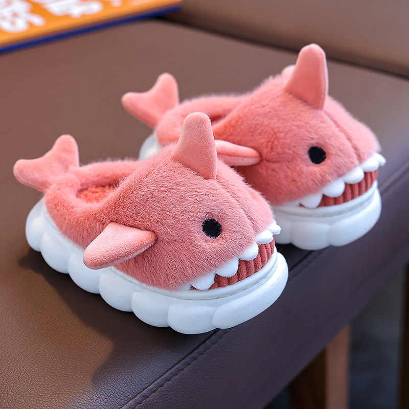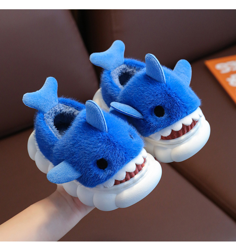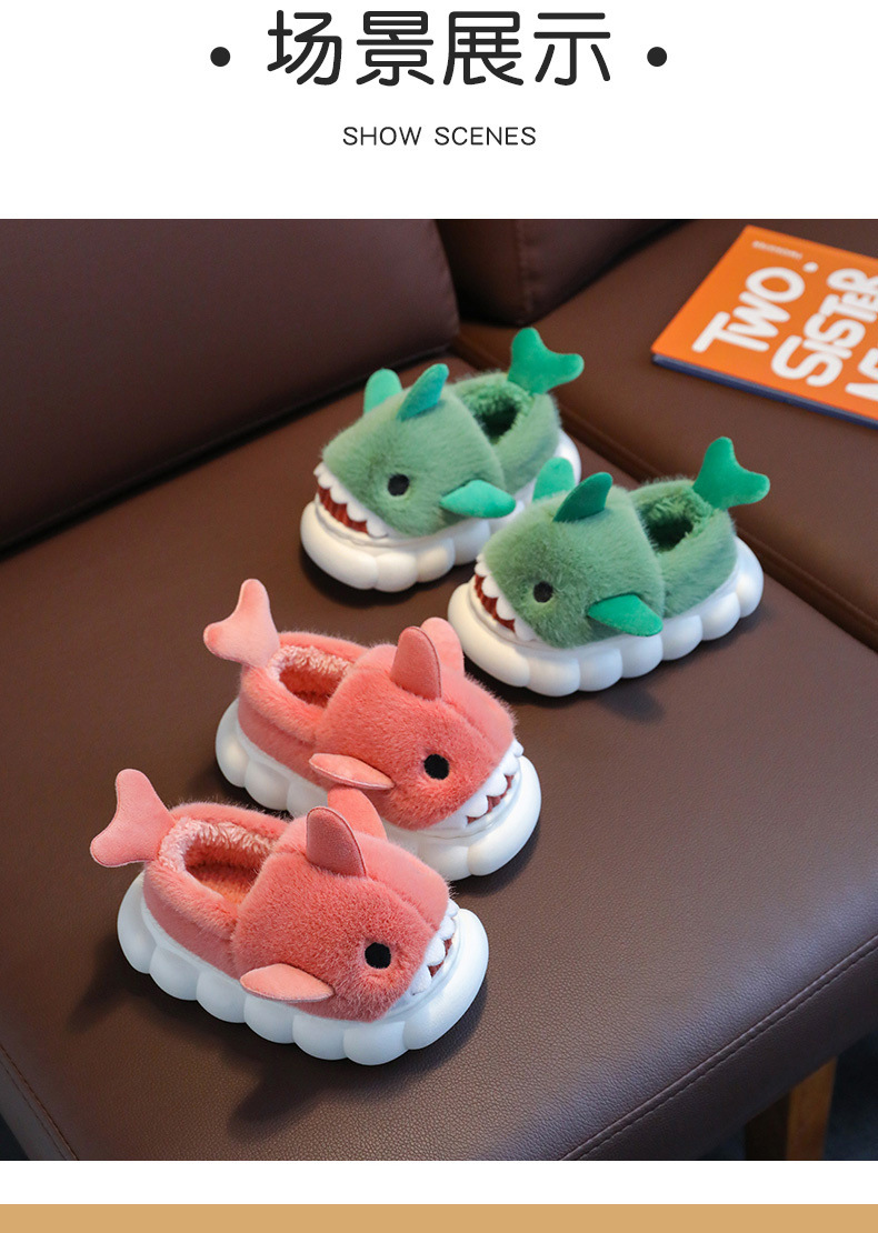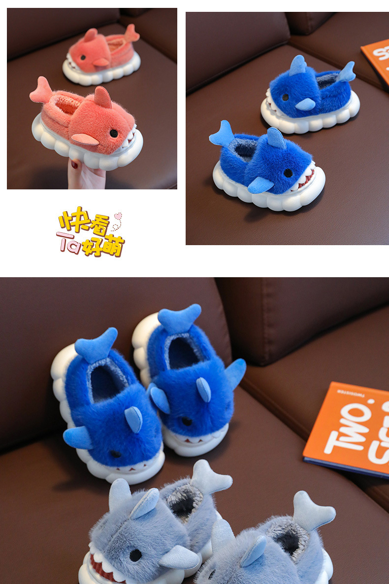 면 슬리퍼와 2023 상어 어린이 가방 새로운 스타일 소년 홈 미끄럼 방지 만화 소녀 소년 면화 신발 겨울