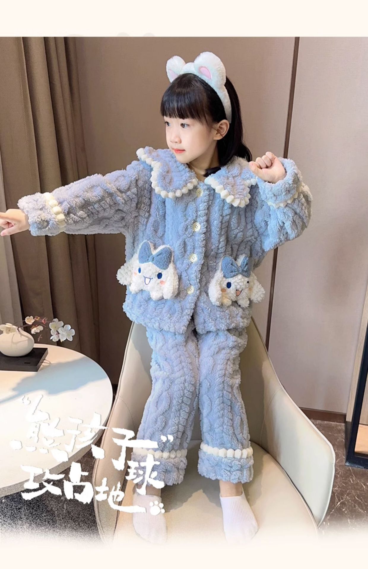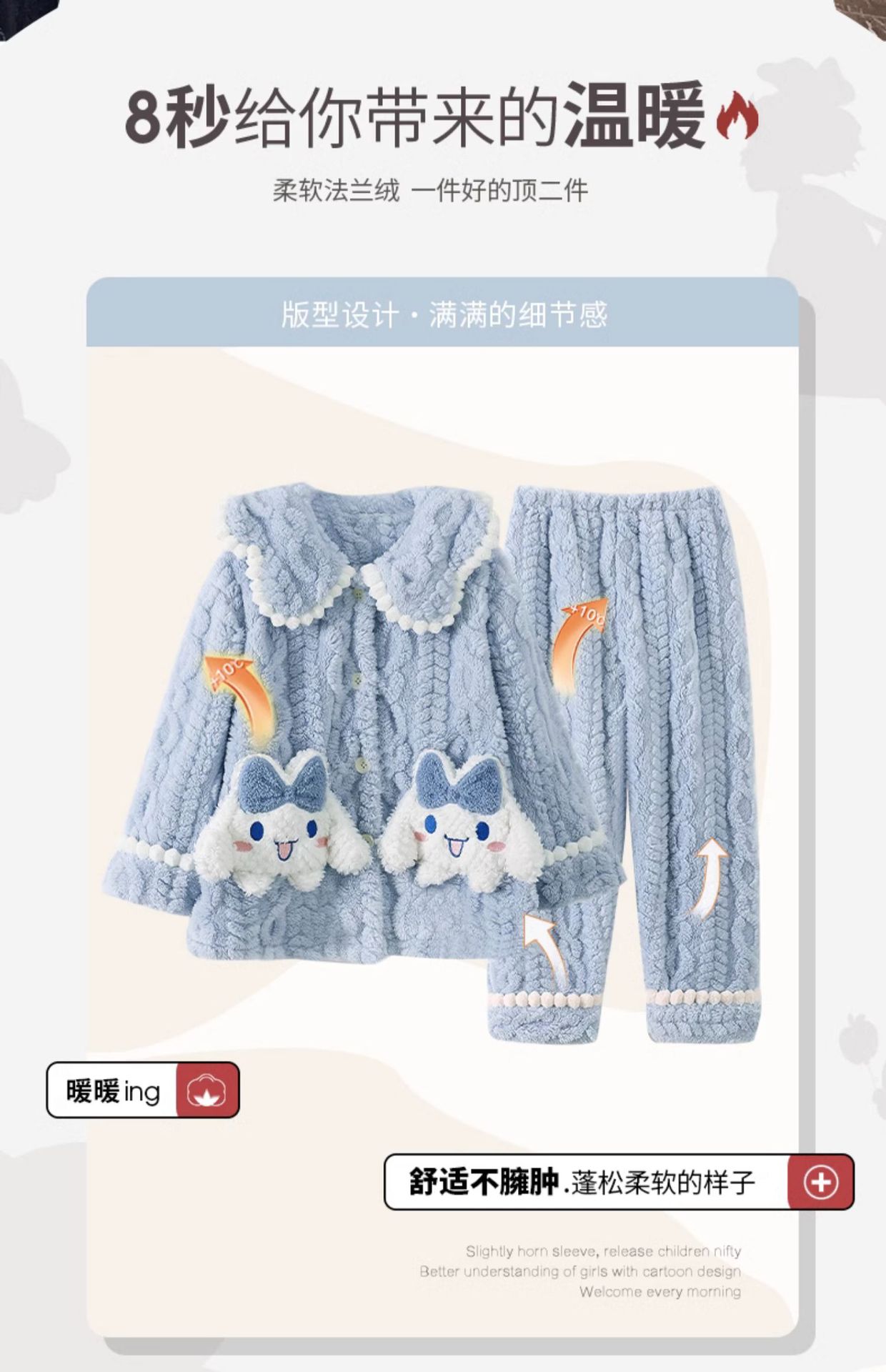 여아 잠옷 가을 겨울 2025 신상 두꺼운 코랄 벨벳 세트 어린이 여아 플란넬 홈웨어