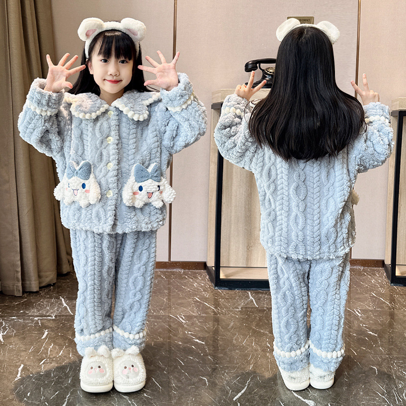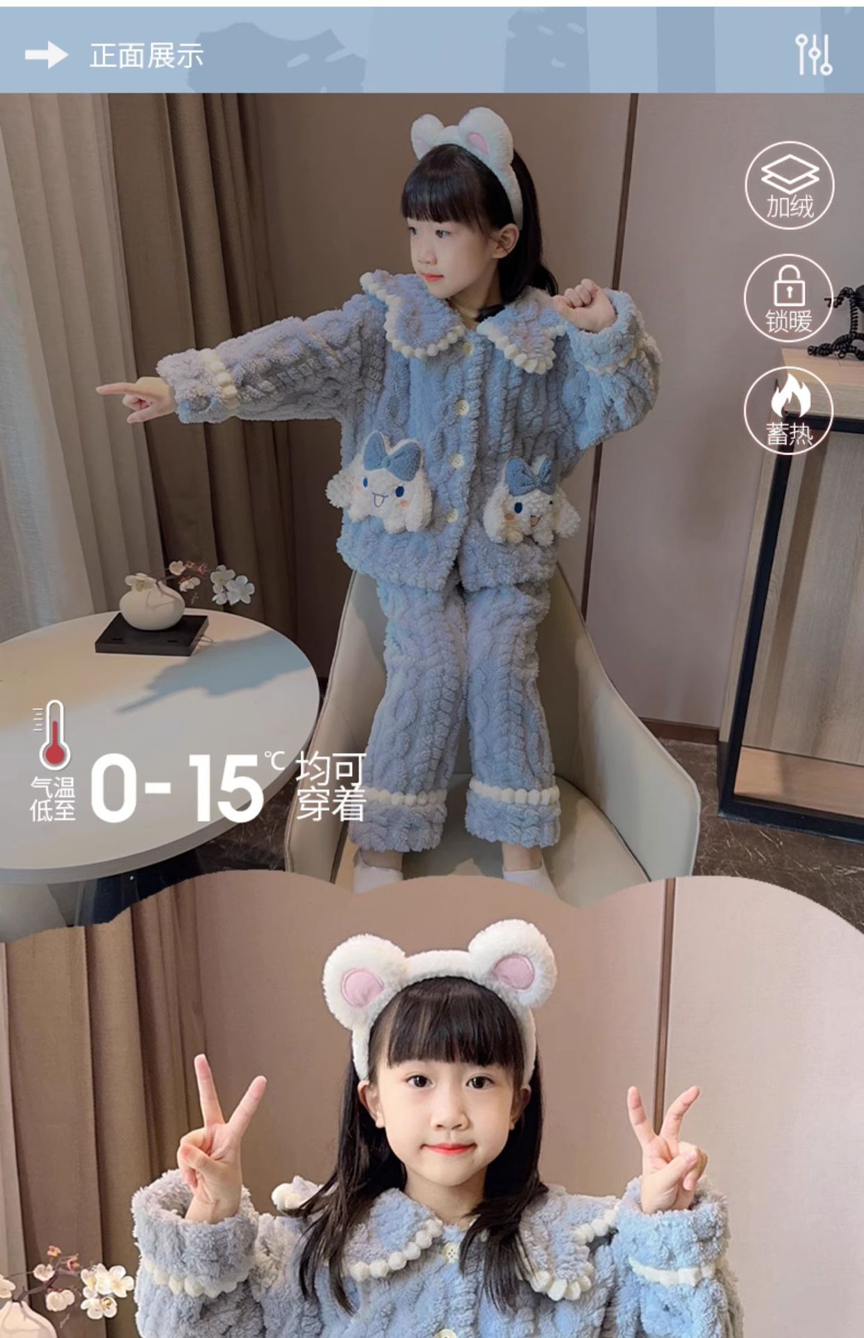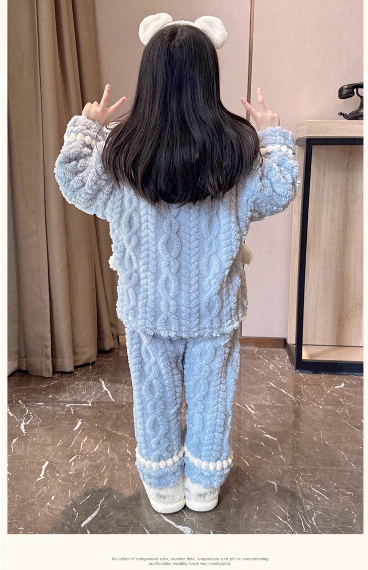 여아 잠옷 가을 겨울 2025 신상 두꺼운 코랄 벨벳 세트 어린이 여아 플란넬 홈웨어스토어 가기