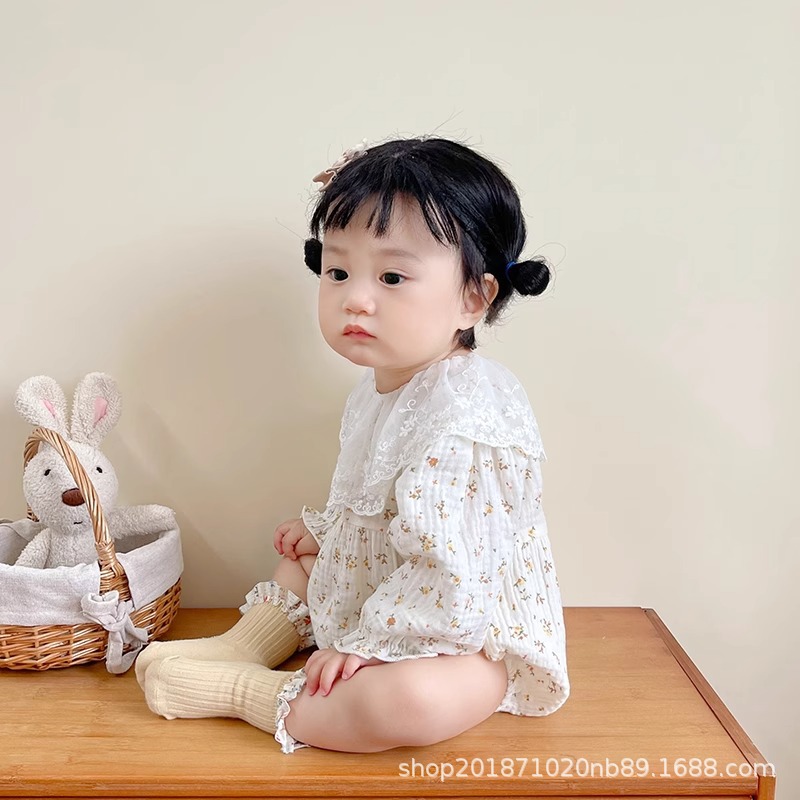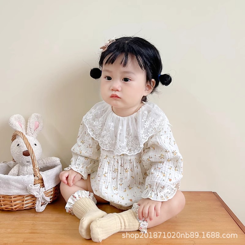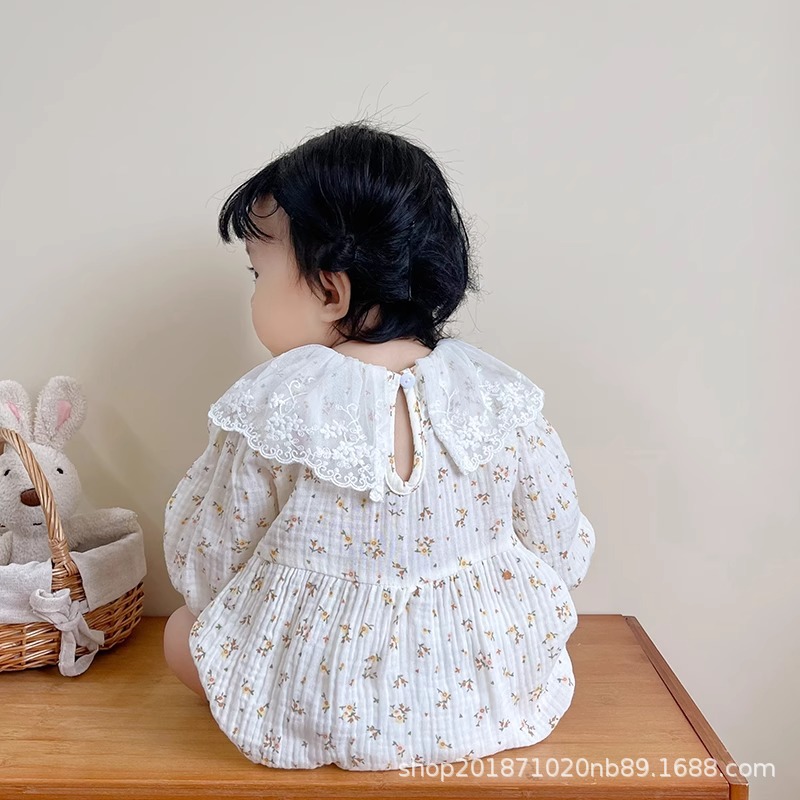 2024 새로운 가을 유아복, 달콤한 꽃무늬 긴팔 베이비 옷, 레이스 여아 롬퍼스토어 가기