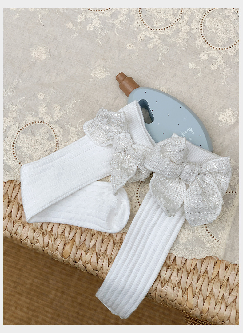 어린이 양말 봄과 가을 여아 한국식 유행 양말 중간 길이 양말 여아 리본매듭 스타킹 종아리 양말 면 양말