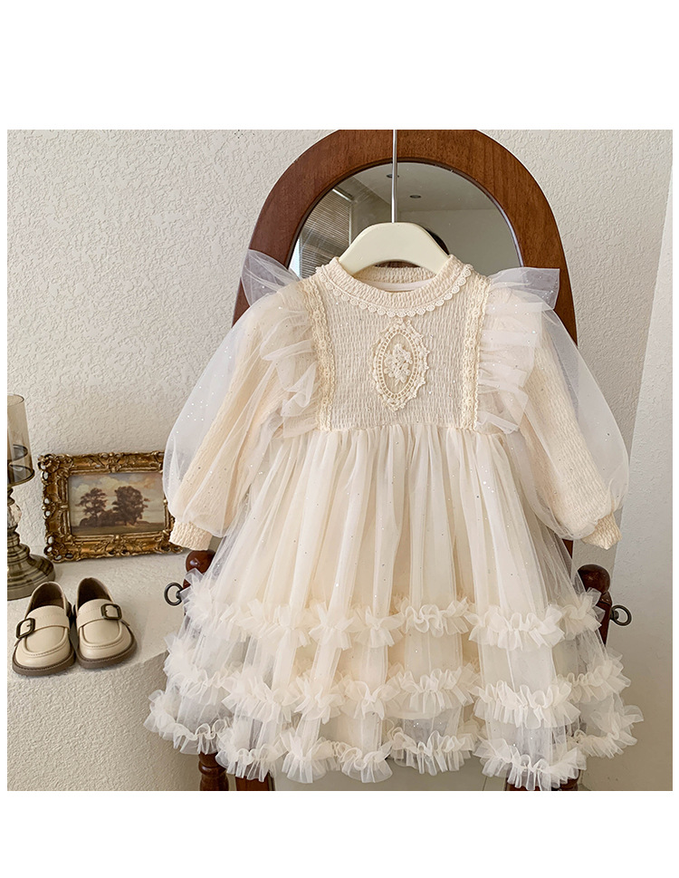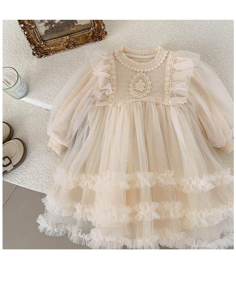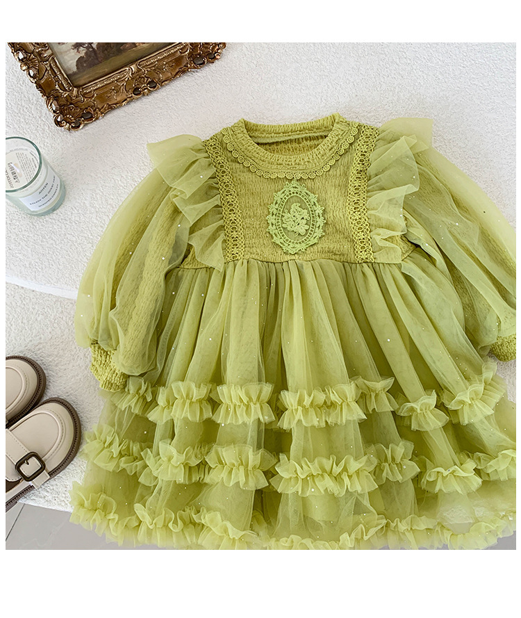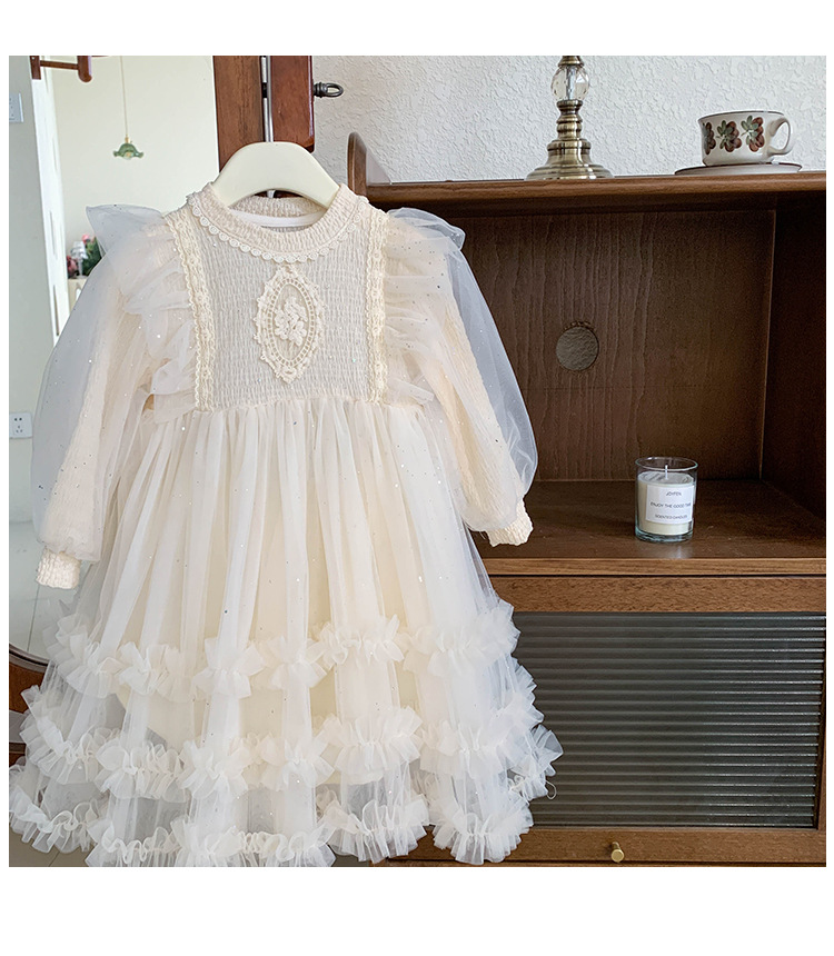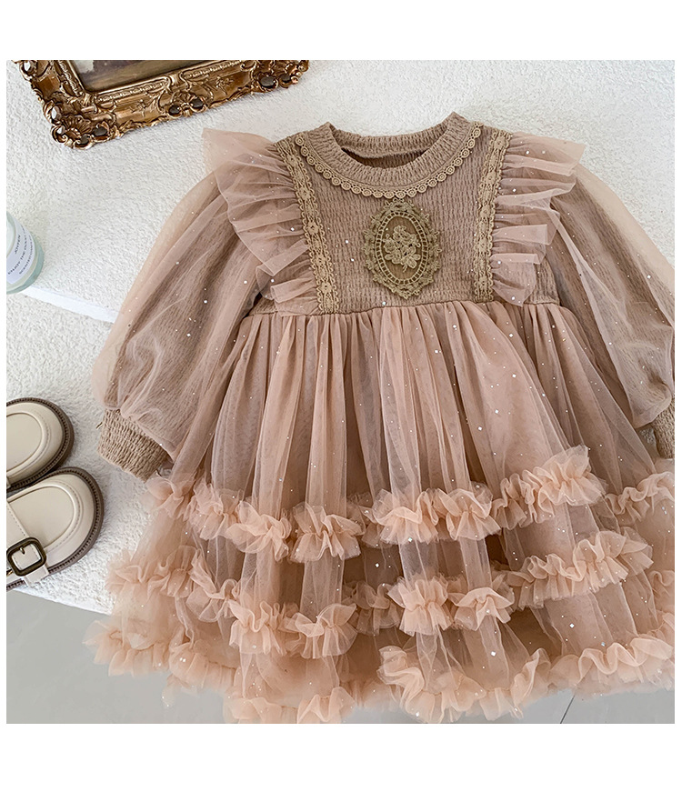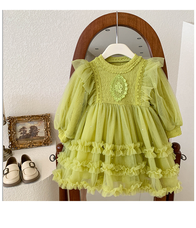 여아용 메쉬 원피스 2025 신상 가을 여아 한국 스타일 패셔너블 드레스 여자 아기 어린이 가을 의류