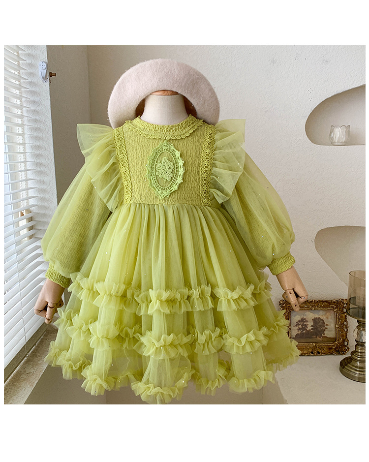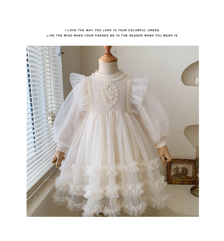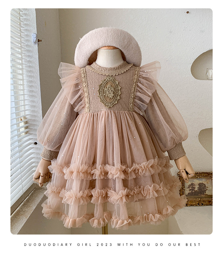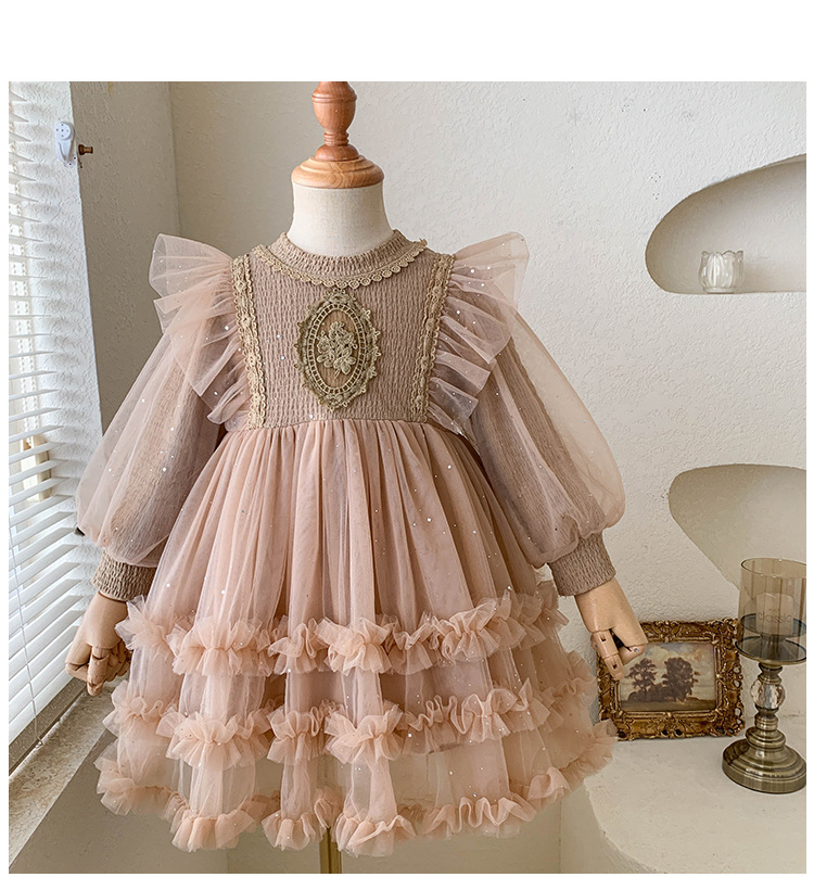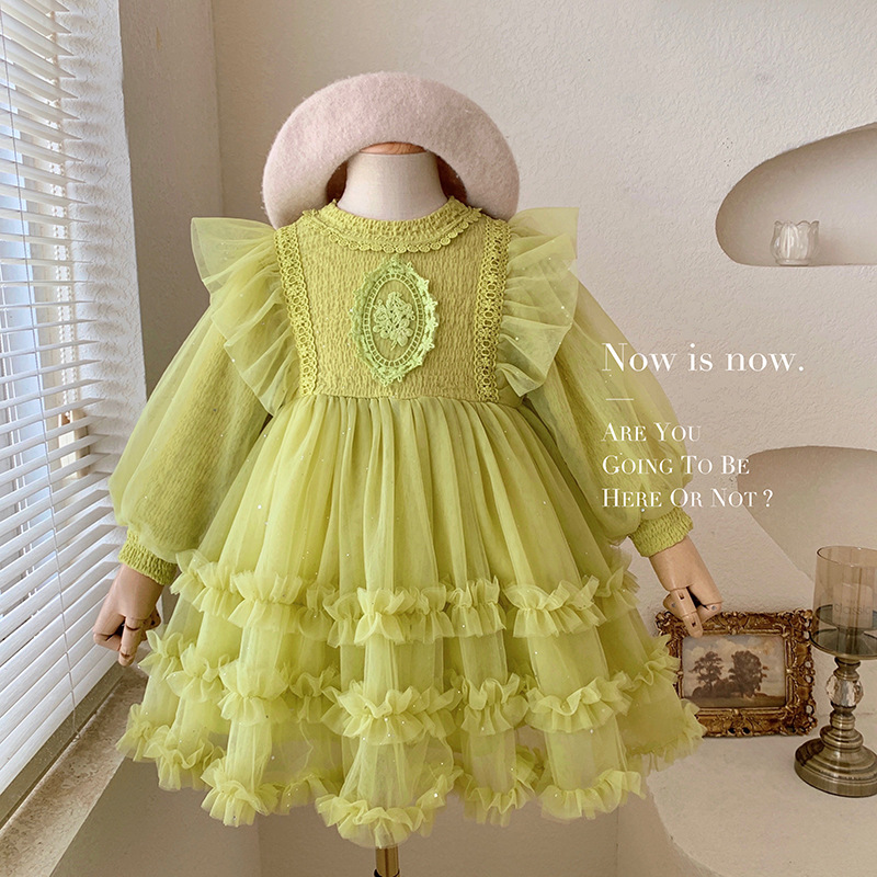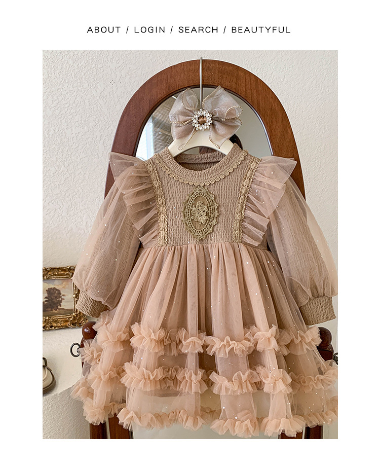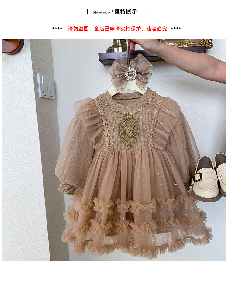 여아용 메쉬 원피스 2025 신상 가을 여아 한국 스타일 패셔너블 드레스 여자 아기 어린이 가을 의류스토어 가기