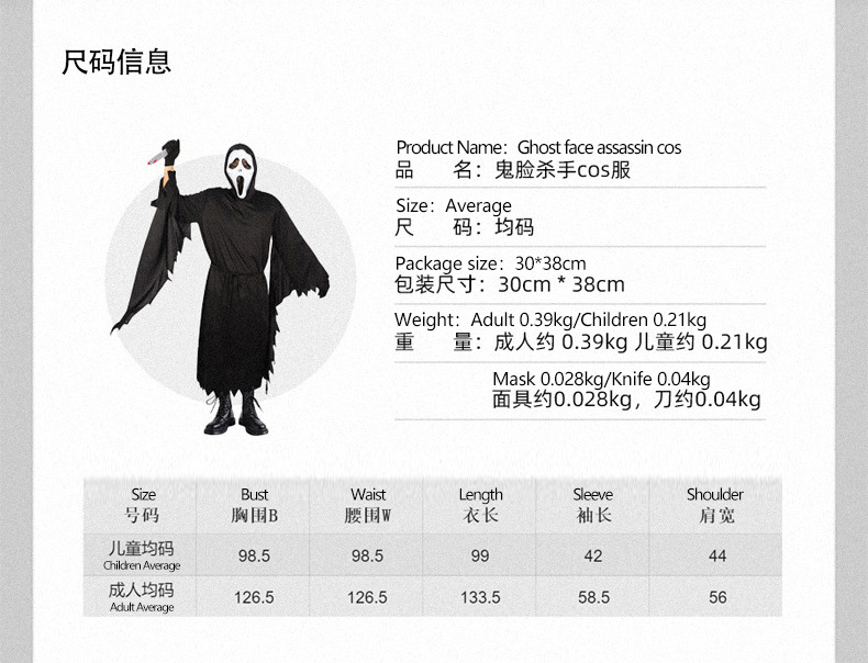 해골 마스크 cos 죽음 의상 비명 공포 코스프레 할로윈 놀이 세트 케이프 유령
