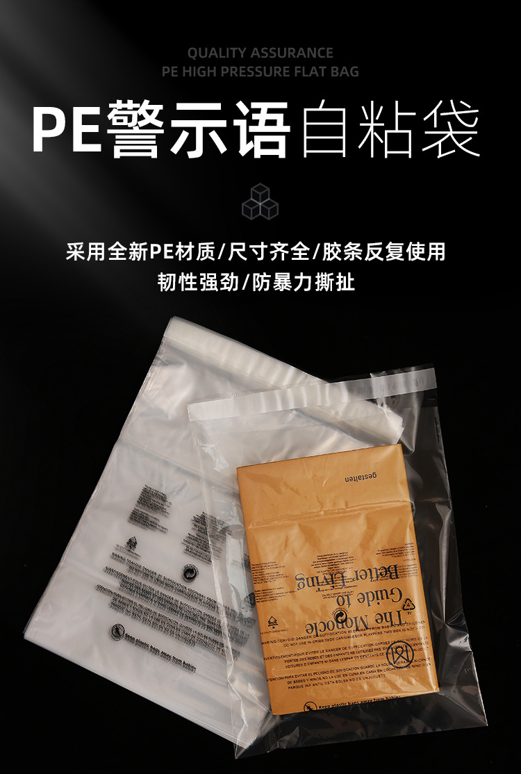 PE 가방 경고 자체 접착 가방 의류 포장 가방 투명 자체 밀봉 부드러운 비닐 봉투 해외 무역 가방 재고 도매
