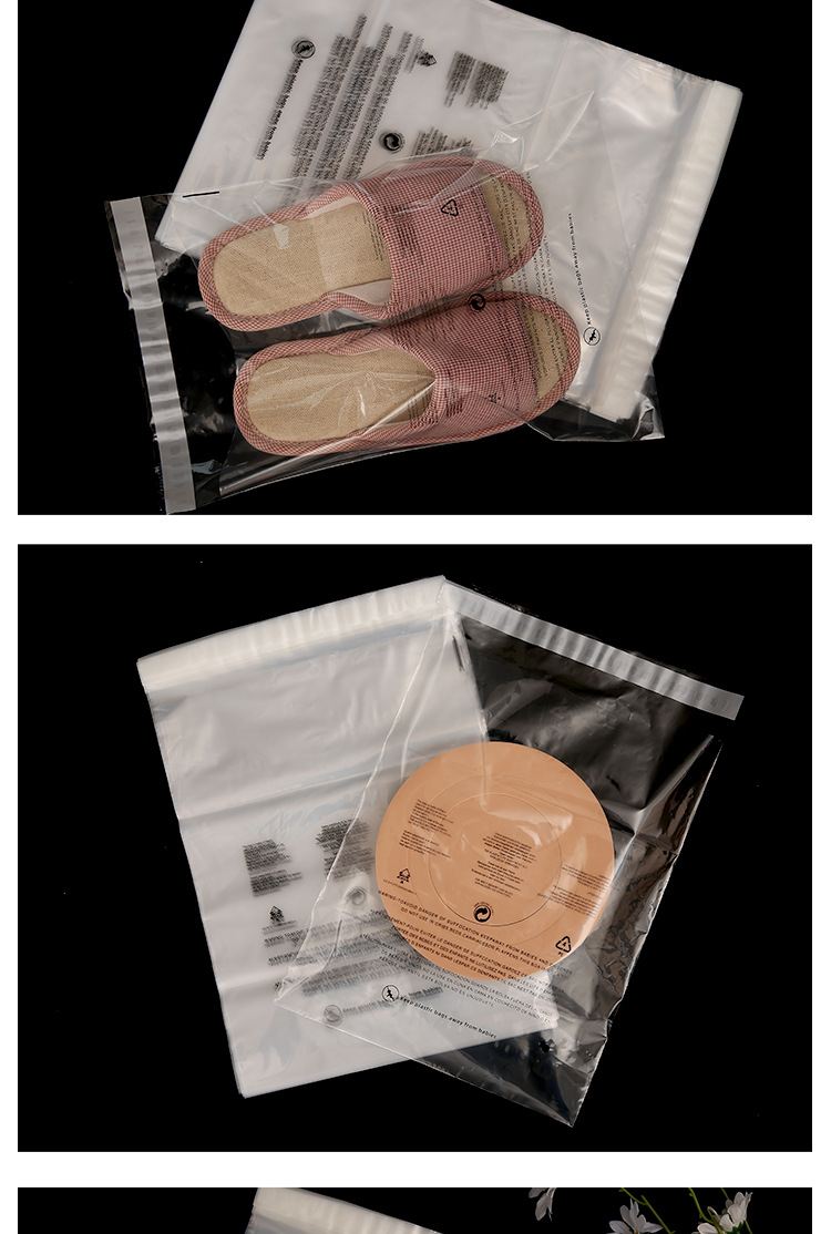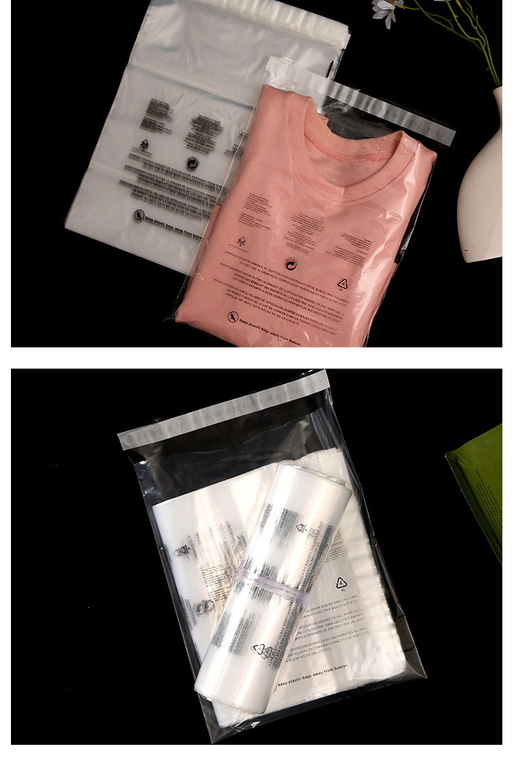 PE 가방 경고 자체 접착 가방 의류 포장 가방 투명 자체 밀봉 부드러운 비닐 봉투 해외 무역 가방 재고 도매스토어 가기