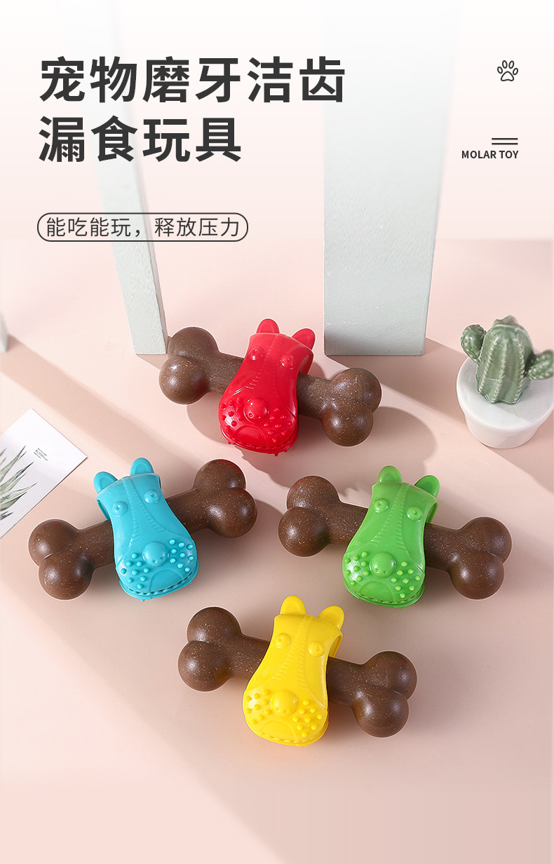 새로운 개 장난감 교육 누출 장난감 시뮬레이션 개 뼈 연삭 스틱 물린 애완 동물 치약 용품 도매스토어 가기