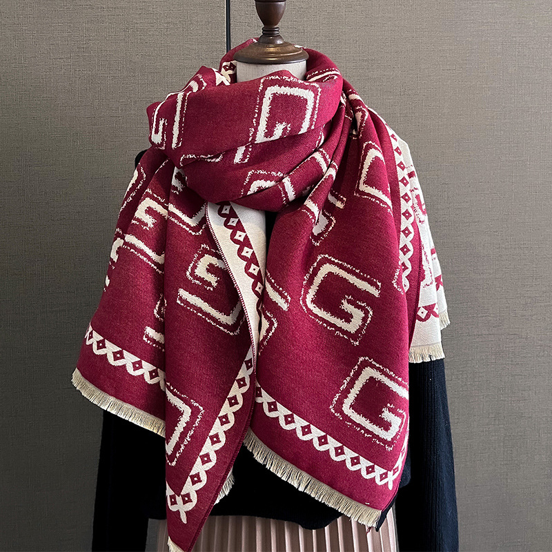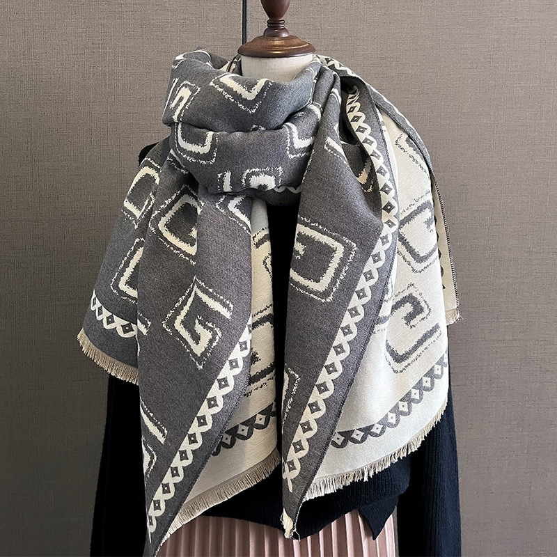 한국 패션 모조 캐시미어 스카프 여자의 겨울 편지 패션 케이프와 새로운 에어컨 숄 따뜻한 스카프
