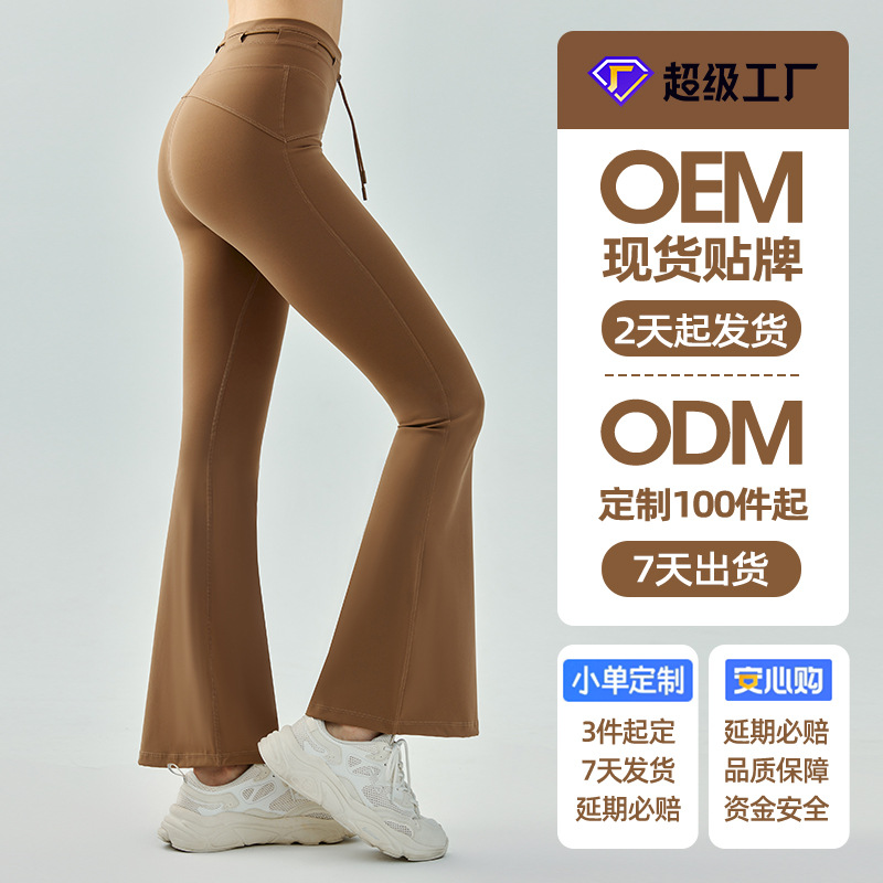 [가공 커스터마이징] 하이 웨이스트 드로스트링 플레어 팬츠 알몸 센스 슬림 뱃살 턱걸이 엉덩이 마이크로 스포츠 속건 피트니스 바지