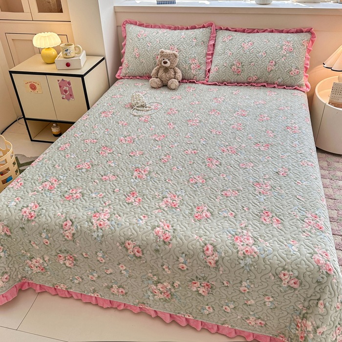• 밀크 벨벳 침대 커버 [핑크 스몰 플로럴]]