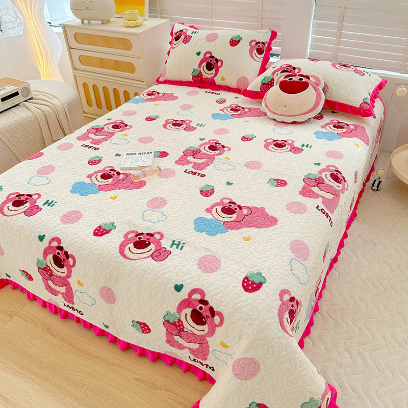 • 밀크 벨벳 침대 커버 [딸기 베어 *] *]