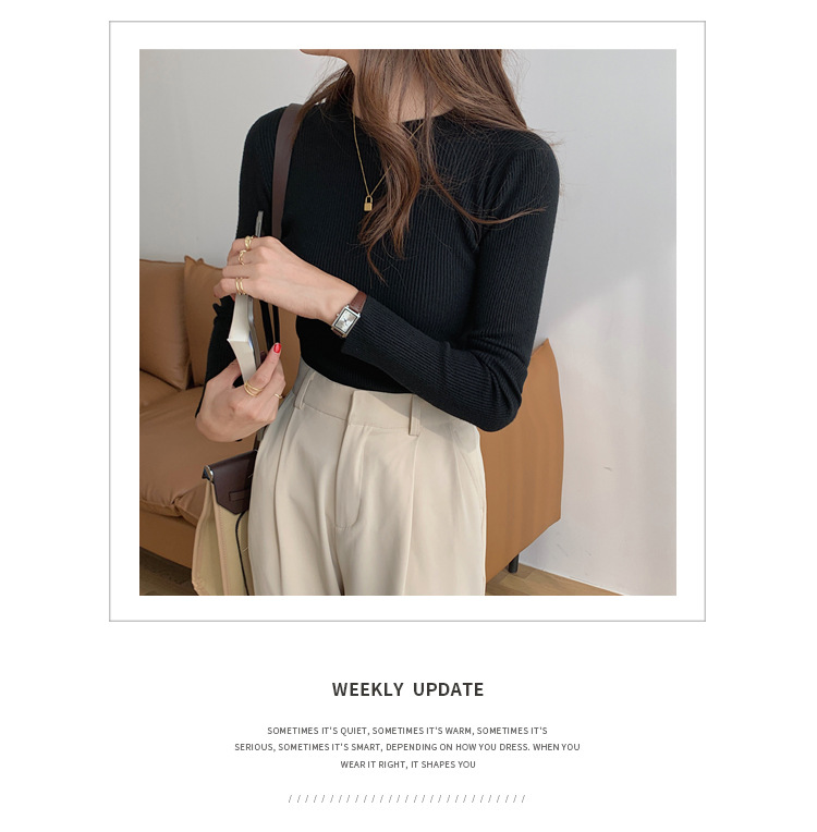 블랙 슬림핏 내부 하의 셔츠 여성 가을과 겨울 한국 긴팔 니트 셔츠 이른 가을 콜드 스타일 고급 탑스토어 가기