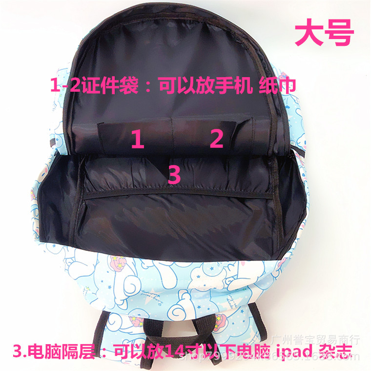 ~ 书包的布料都是一大片裁剪出来的,所以每一个书包上的卡通人物位置都不会一样 ~