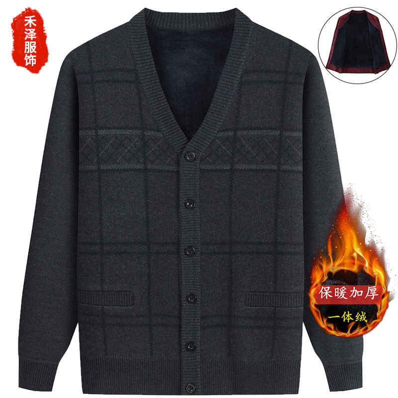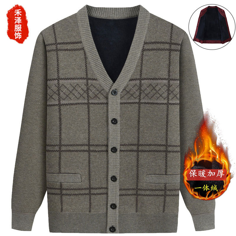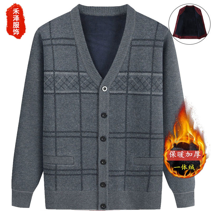 아빠의 가을과 겨울 따뜻한 스웨터 코트 60 세 니트웨어 기모 옷 남성 할아버지 겨울 가디건
