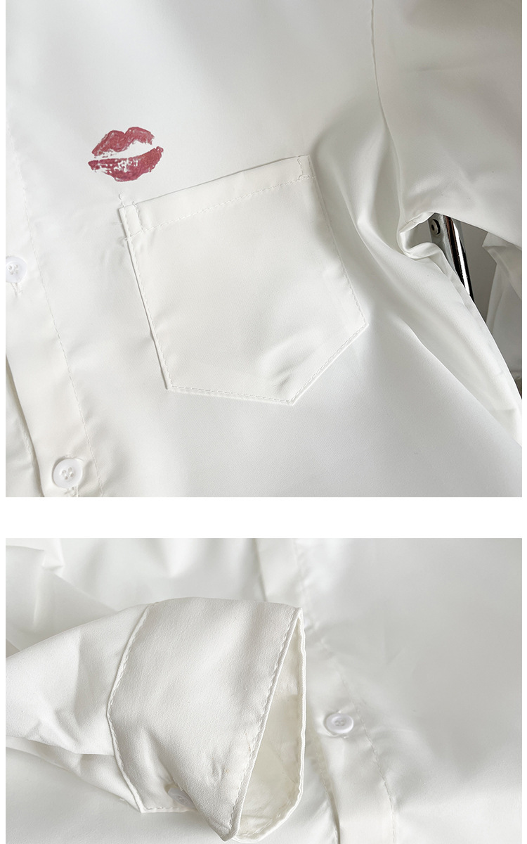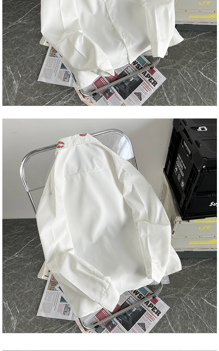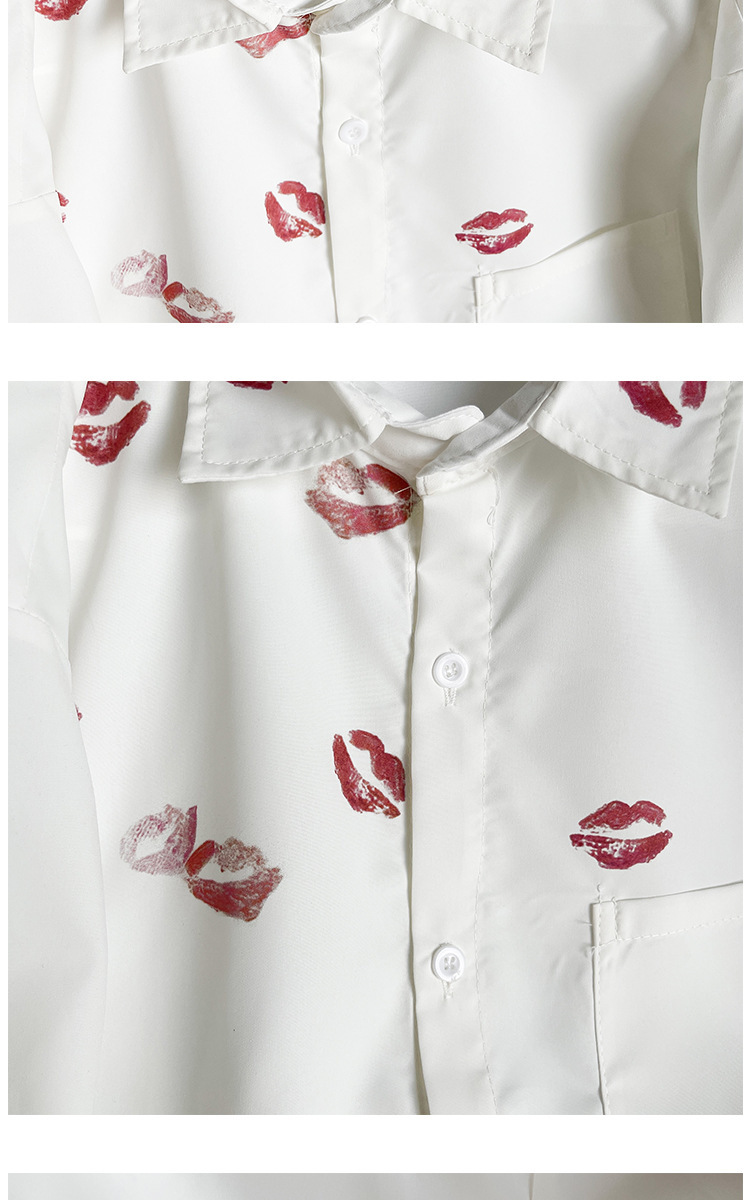 슈아이 셔츠 남성용 긴팔 홍콩 스타일 bf 유행 립 프린트 셔츠 가을 얇은 루즈한 캐주얼 탑스토어 가기