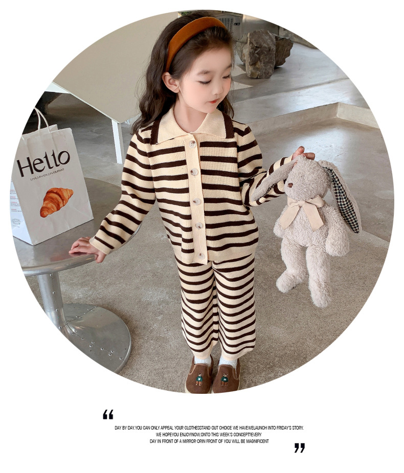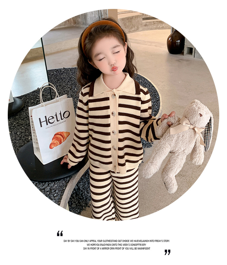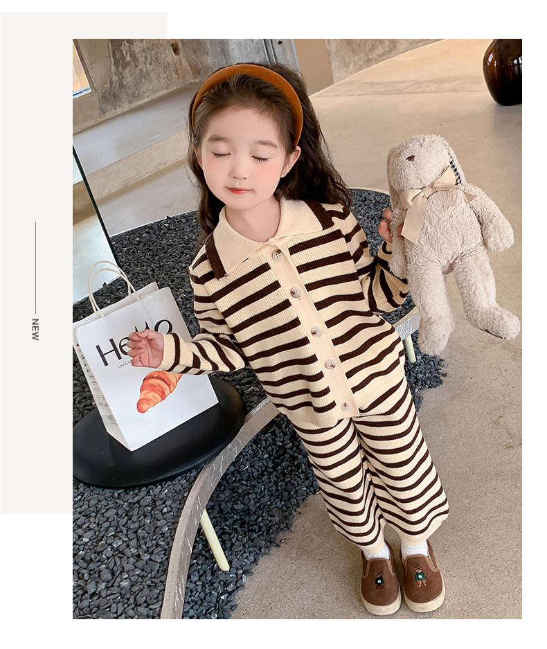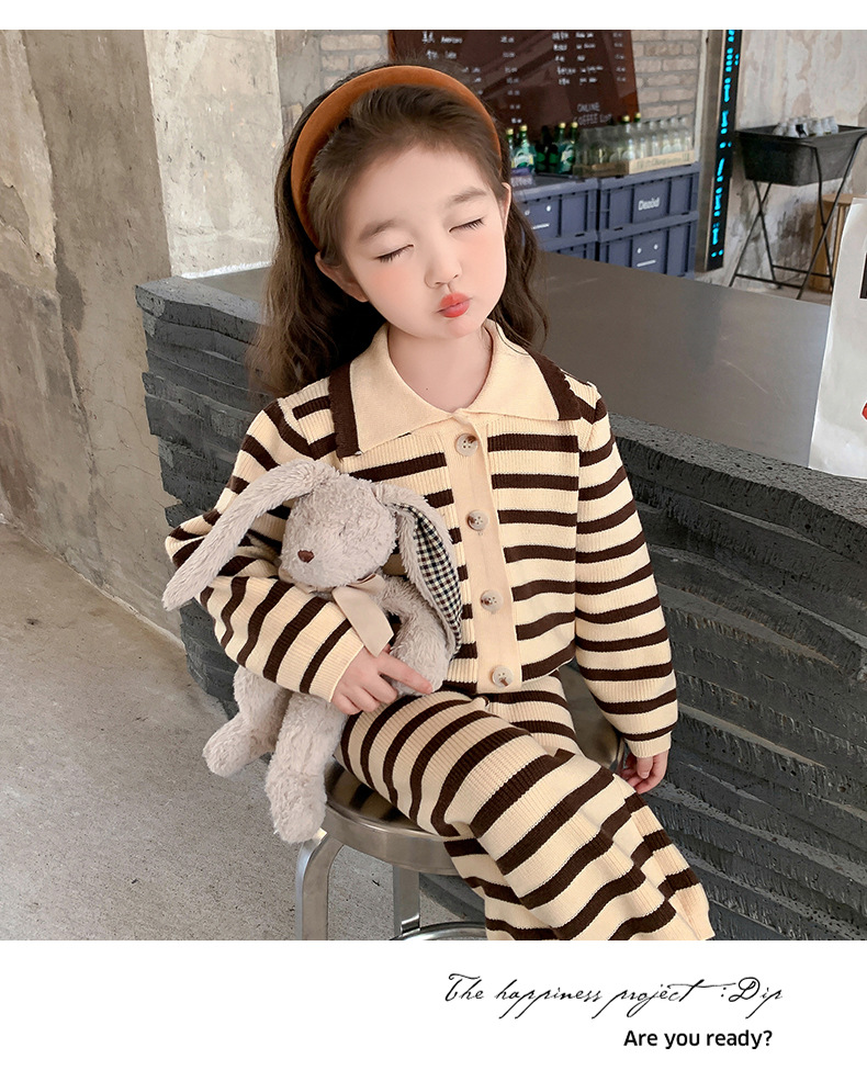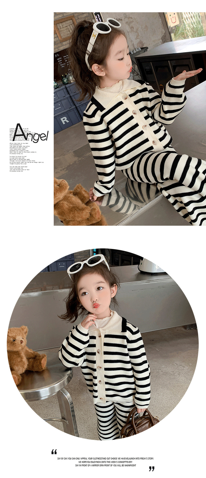 아기 소녀 스트라이프 스웨터 가디건 세트 가을 2023 새로운 소녀 세련된 한국 투피스 트렌디스토어 가기