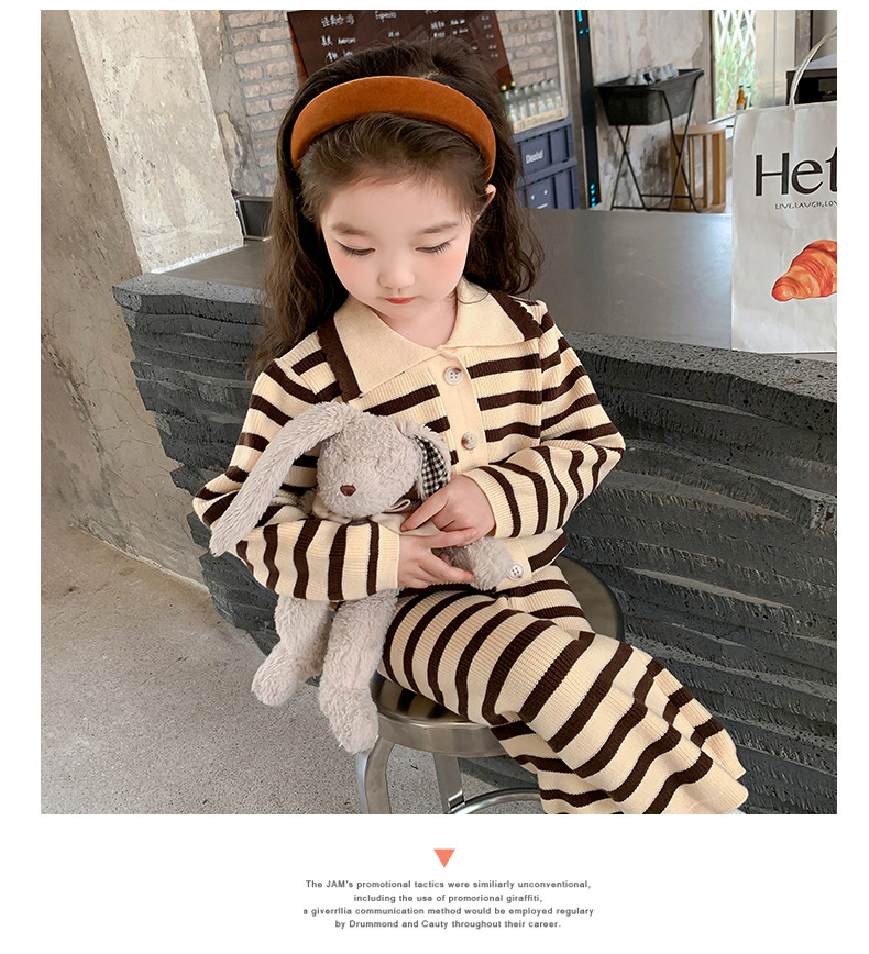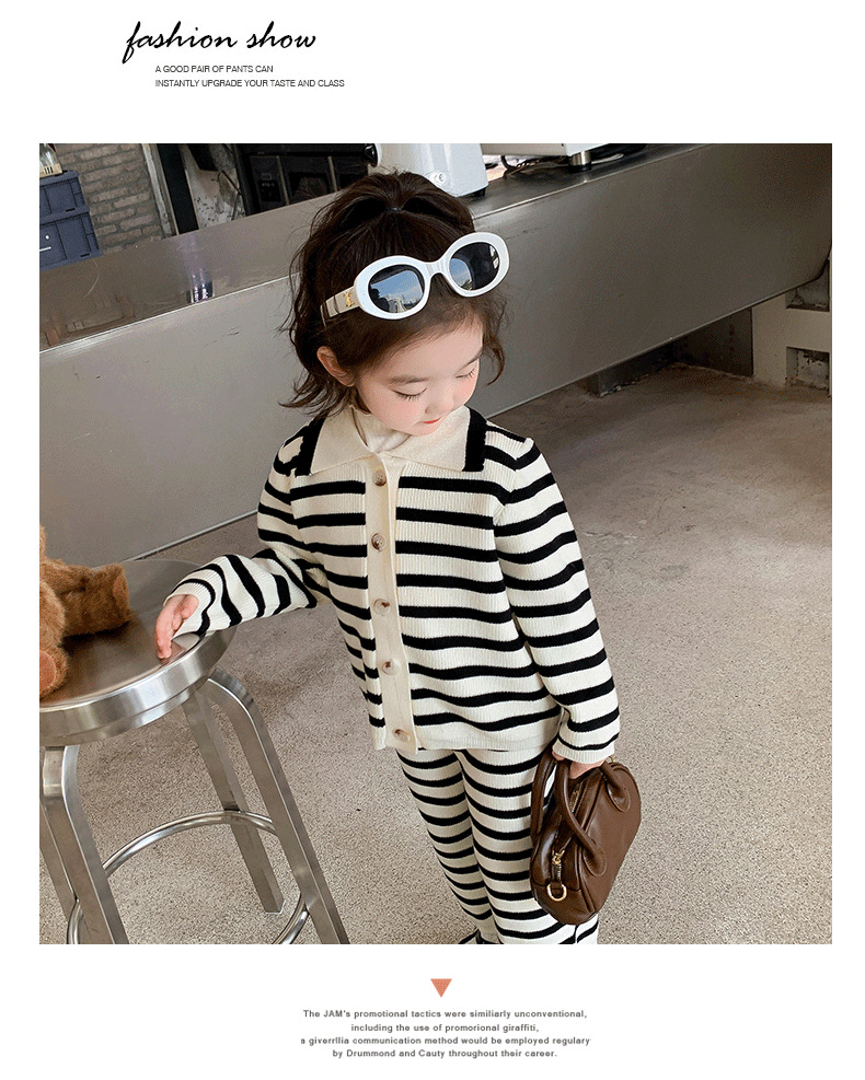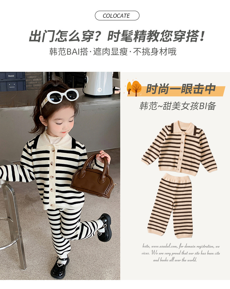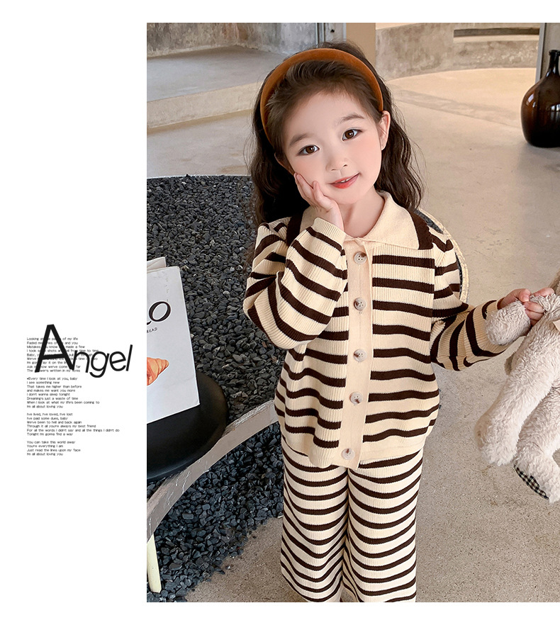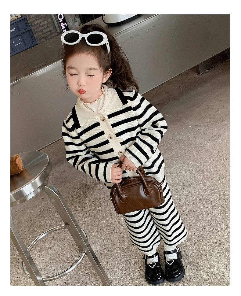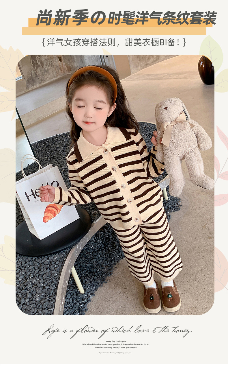 아기 소녀 스트라이프 스웨터 가디건 세트 가을 2023 새로운 소녀 세련된 한국 투피스 트렌디스토어 가기