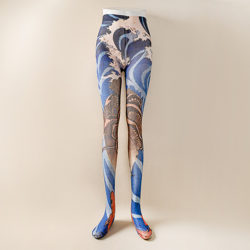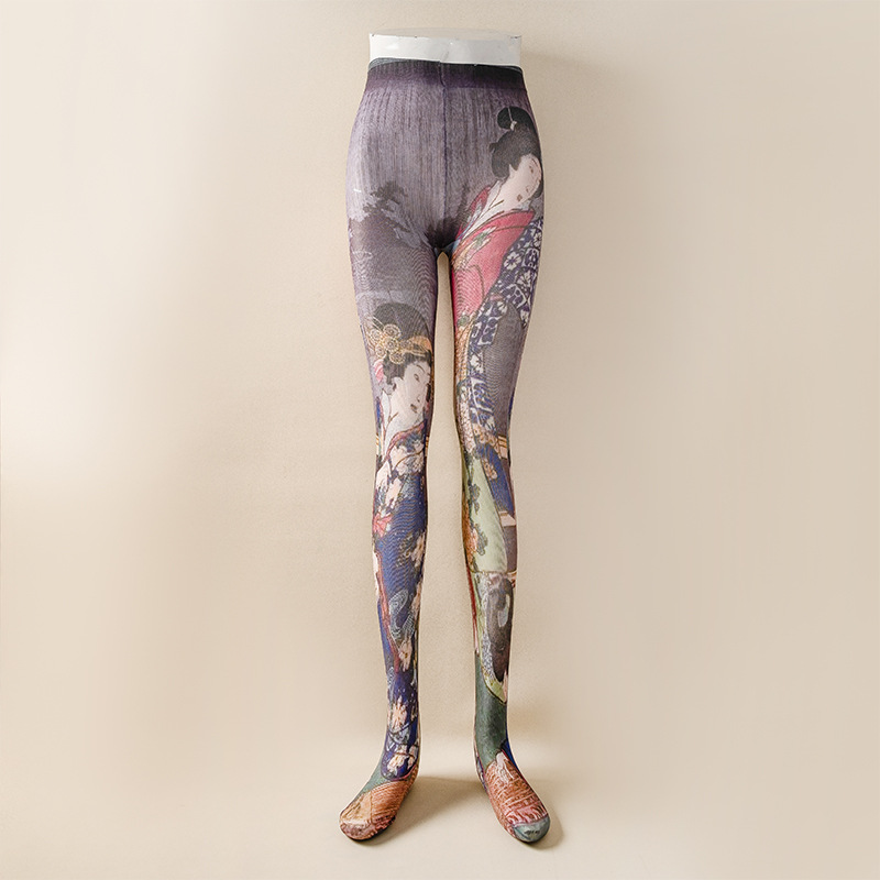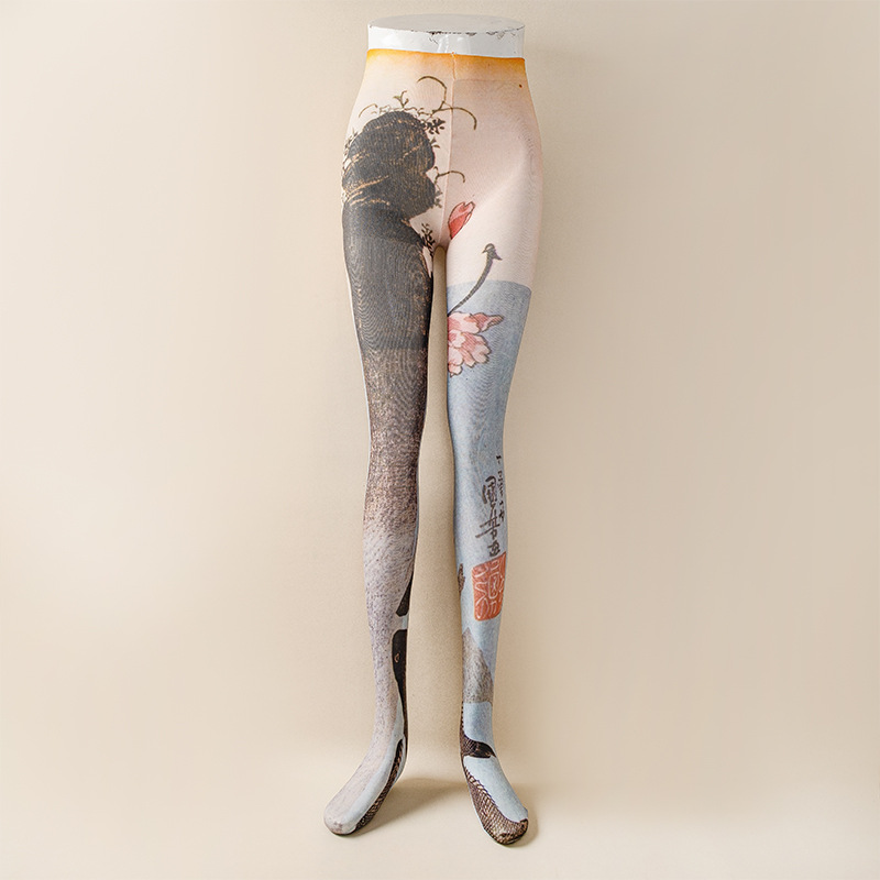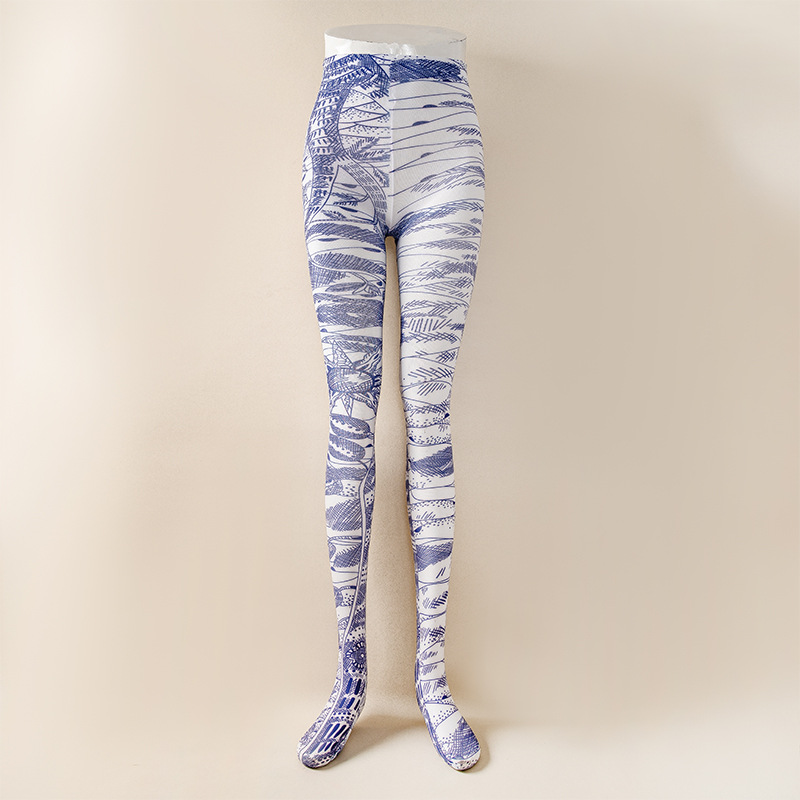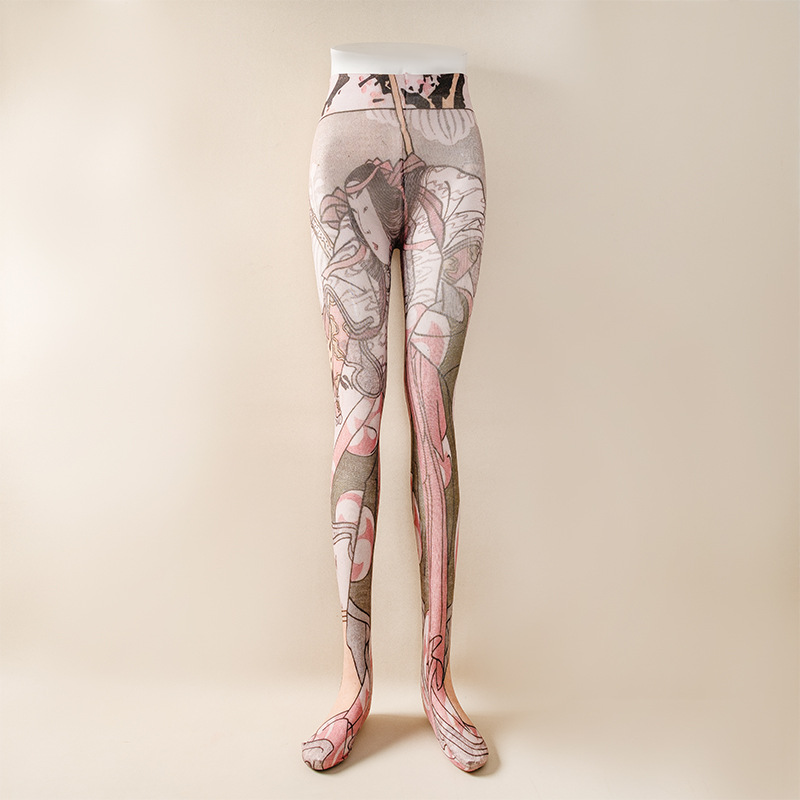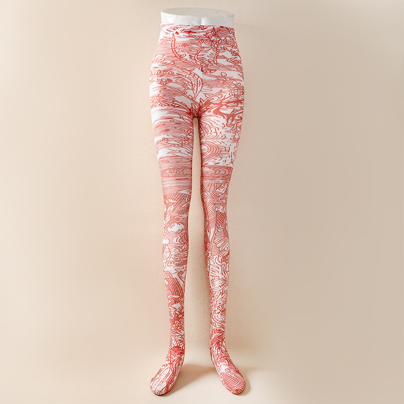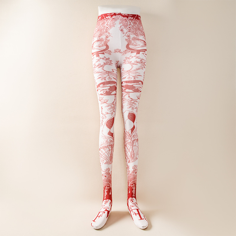 국경 봄과 가을 여성 인쇄 팬티 스타킹 패션 다목적 꽃 표범 인쇄 나비 인쇄 스타킹 양말 안티 걸림
