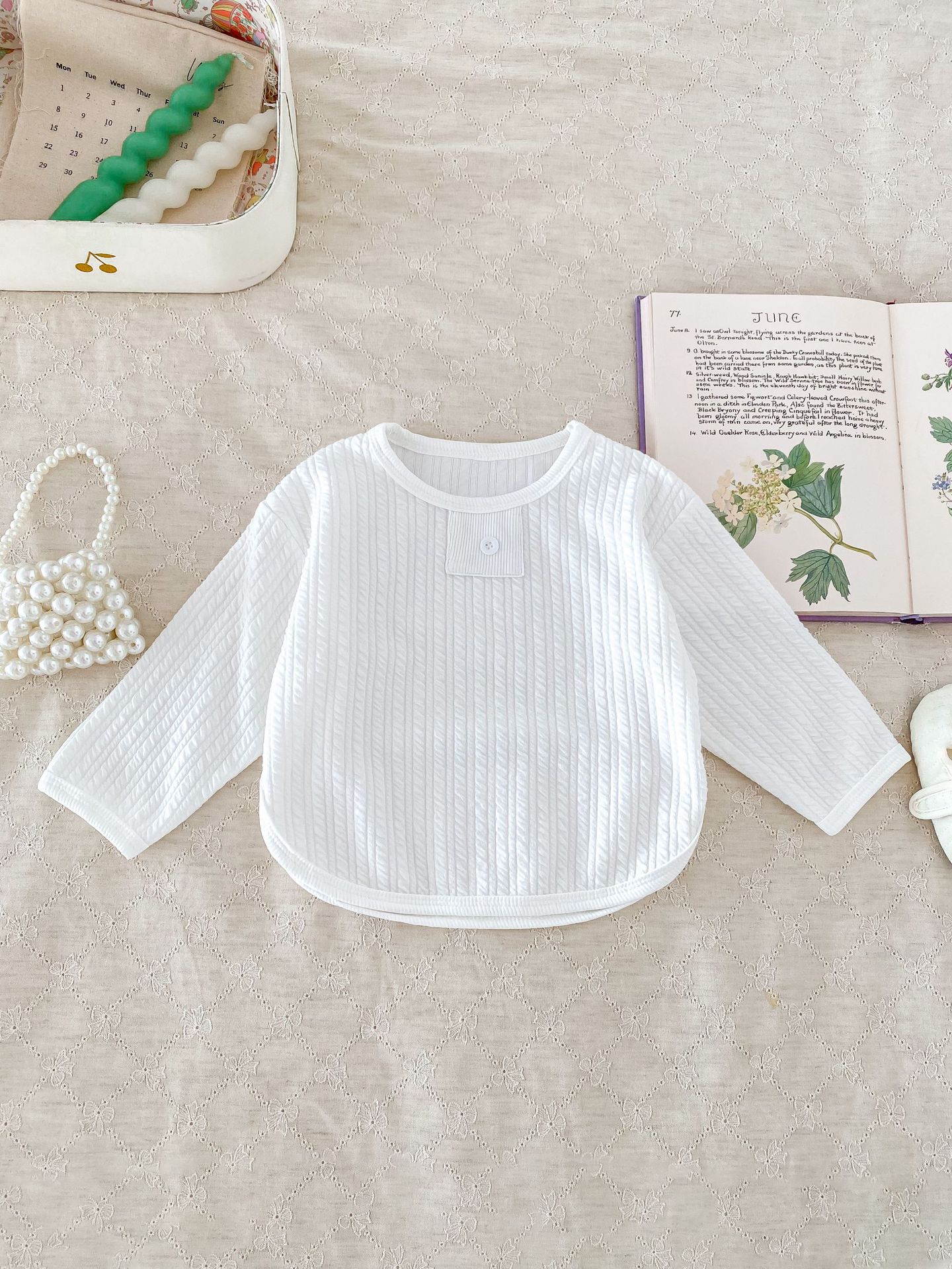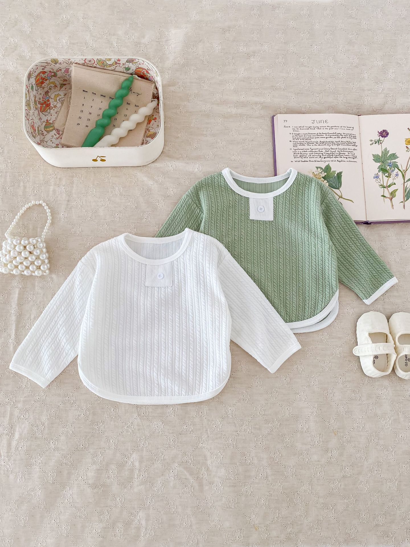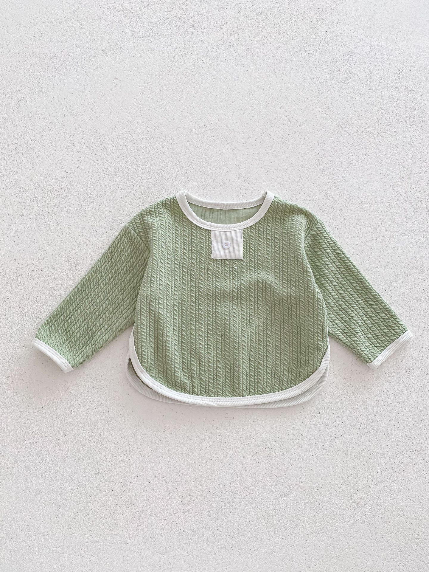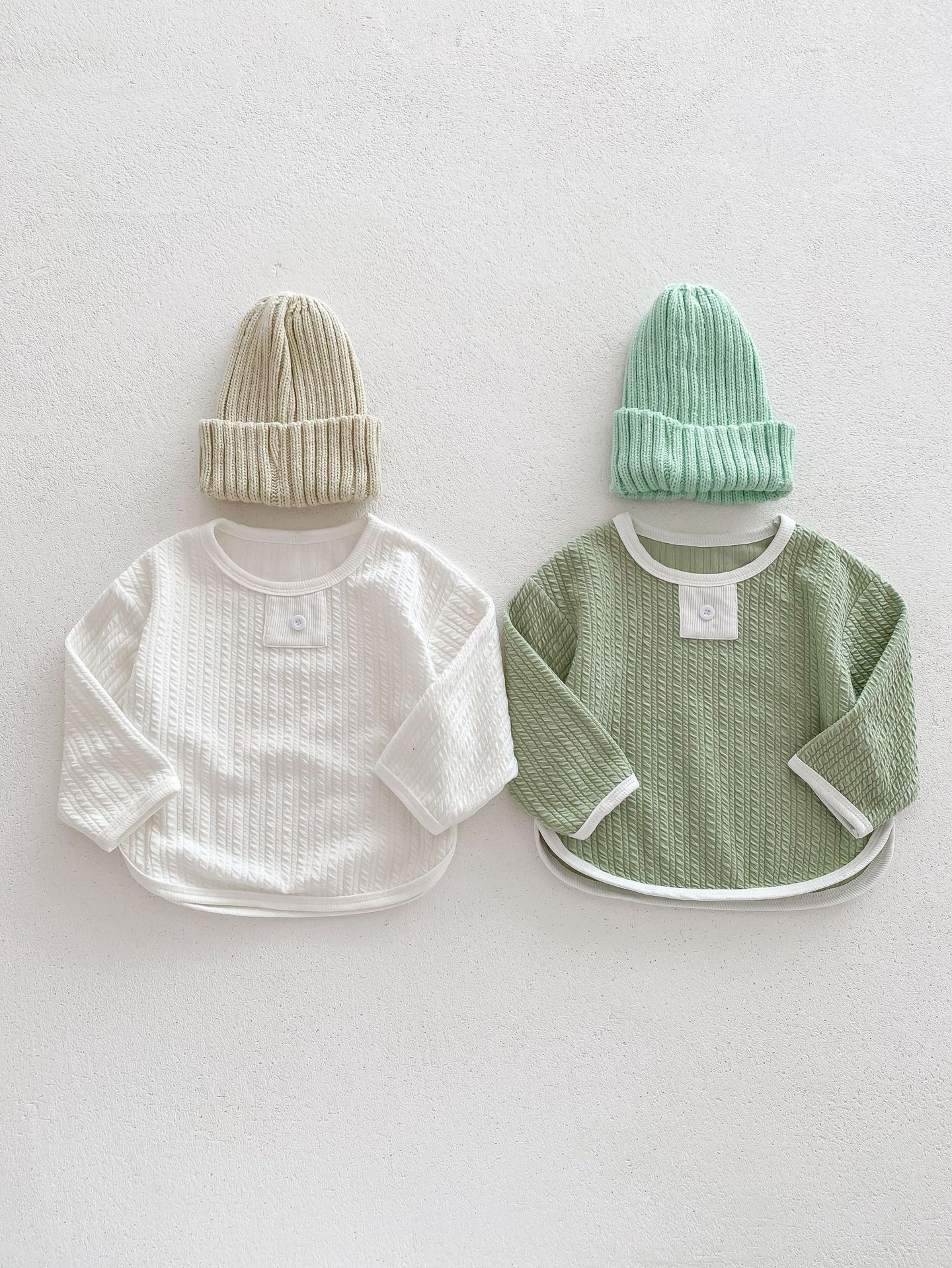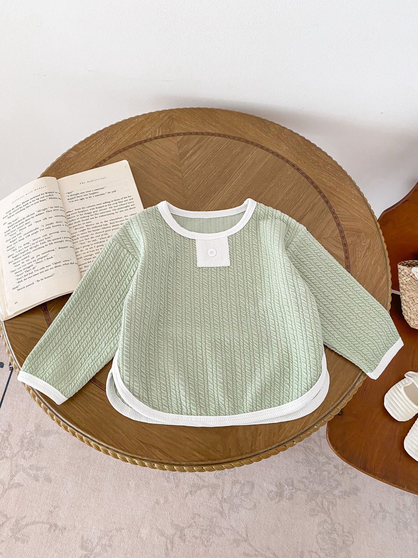 한국 유아 어린이 착용 대마 패턴 니트 탑 어린이 봄과 가을 느슨한 서양 스타일 아크 가장자리 캐주얼 티셔츠