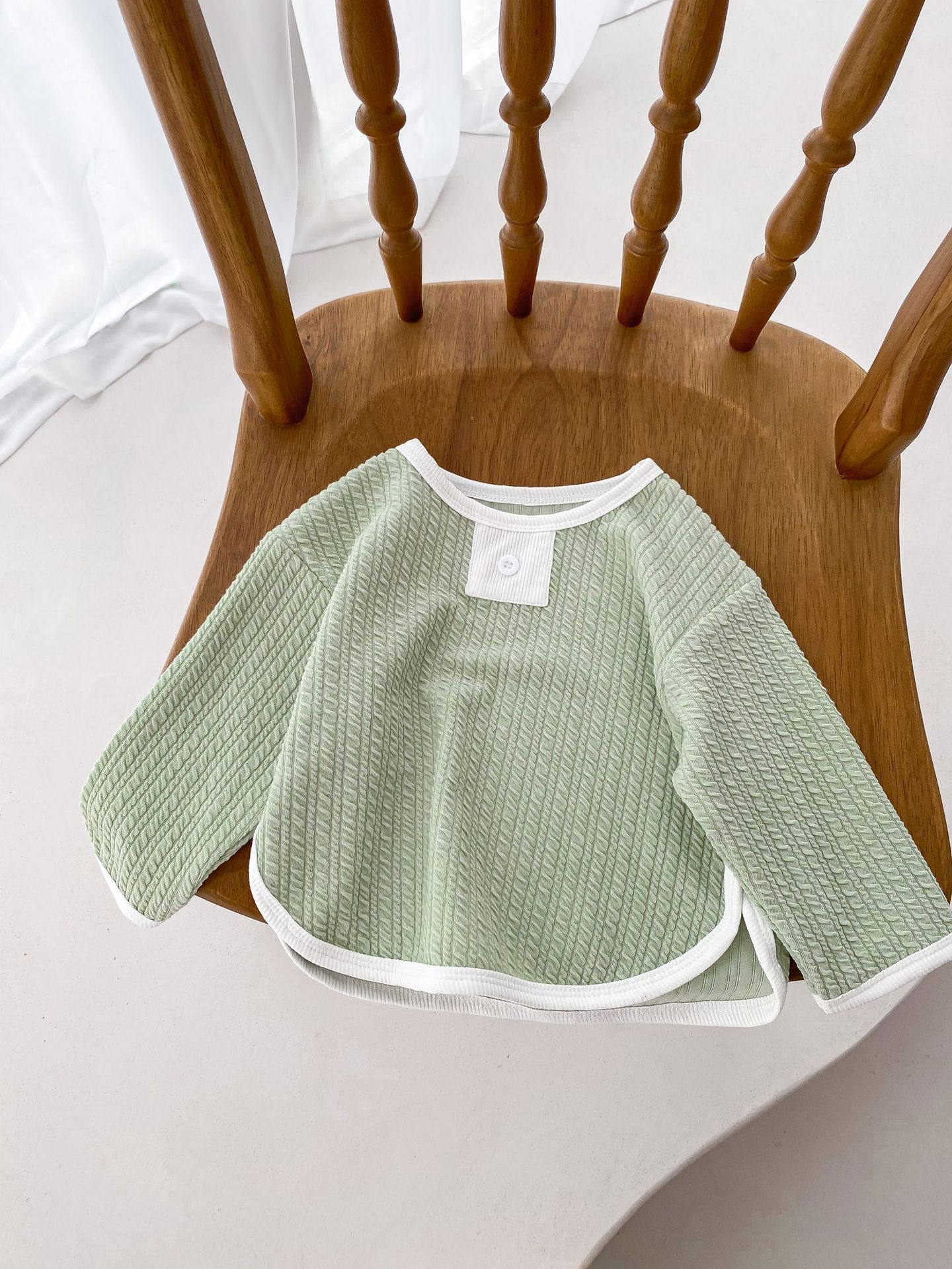 한국 유아 어린이 착용 대마 패턴 니트 탑 어린이 봄과 가을 느슨한 서양 스타일 아크 가장자리 캐주얼 티셔츠스토어 가기