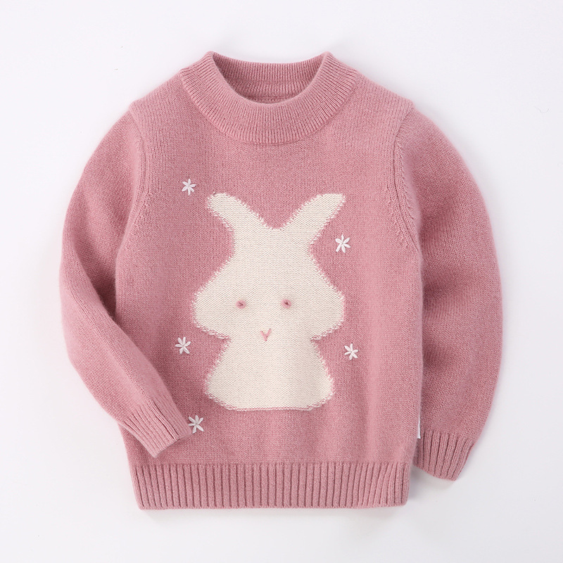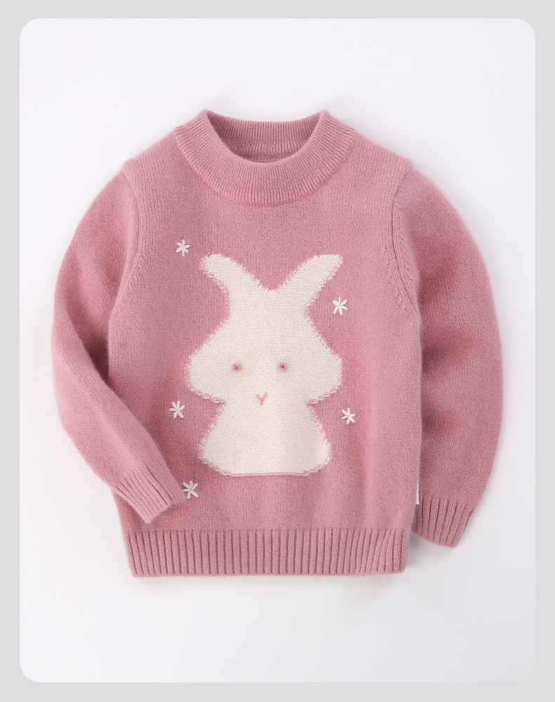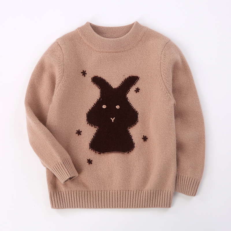 양고기 점프 어린이 캐시미어 스웨터 겨울 새로운 만화 토끼 스웨터 홍예 윤타이 100% 캐시미어