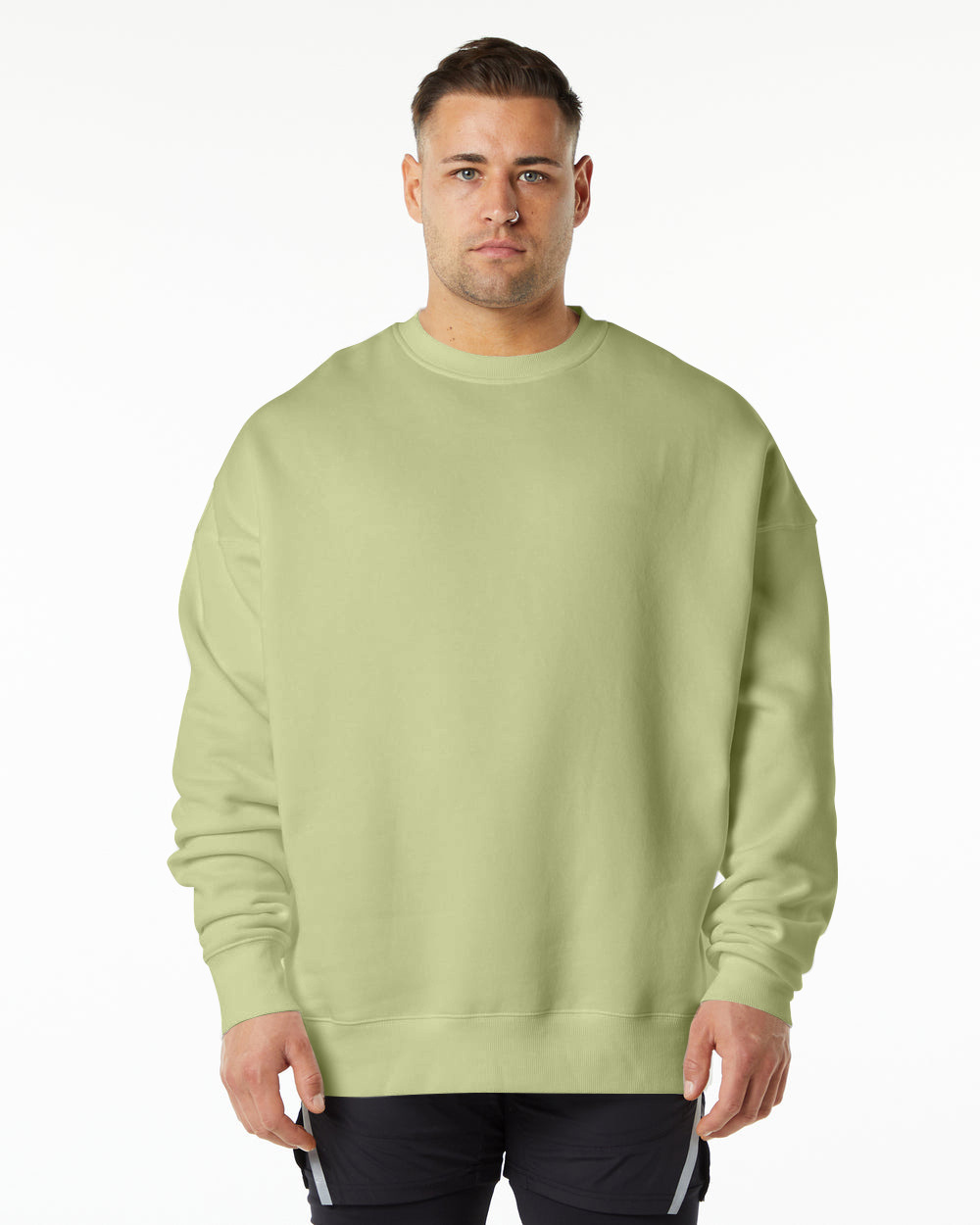 400g 미국 크기 기모 두꺼운 크루넥 스웨터 남자의 미국 느슨한 어깨 단색 커플 특대 스웨터 조수스토어 가기