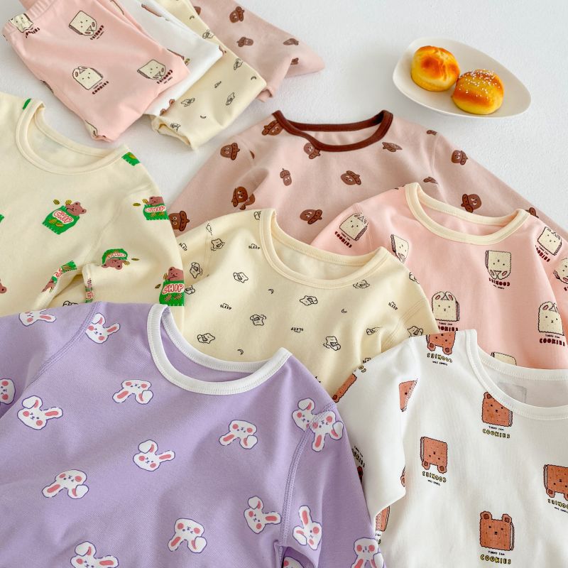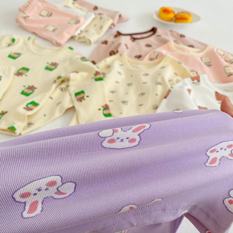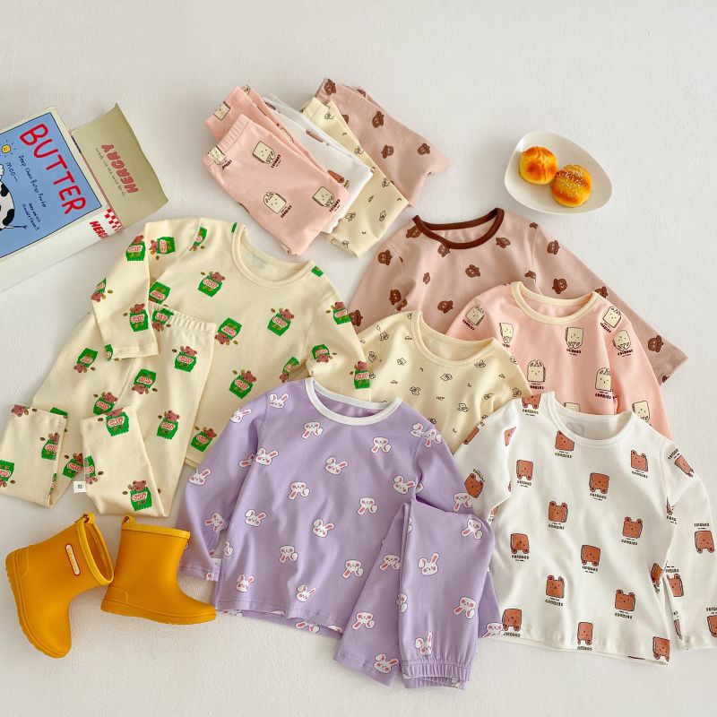 [클리어아웃 - 반품/교환 불가] 90-130 사이즈 아동용 가정복 세트, 남아 및 여아용 순면 본리스 잠옷스토어 가기