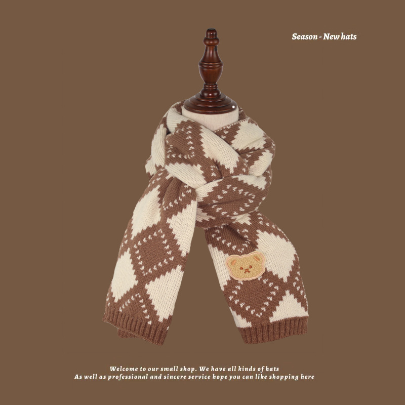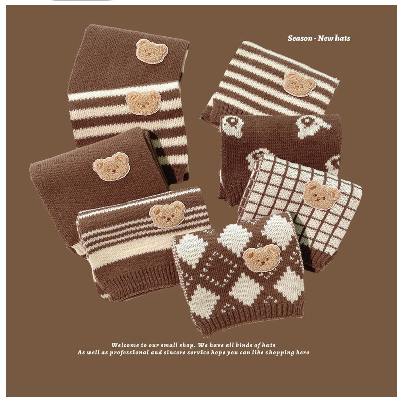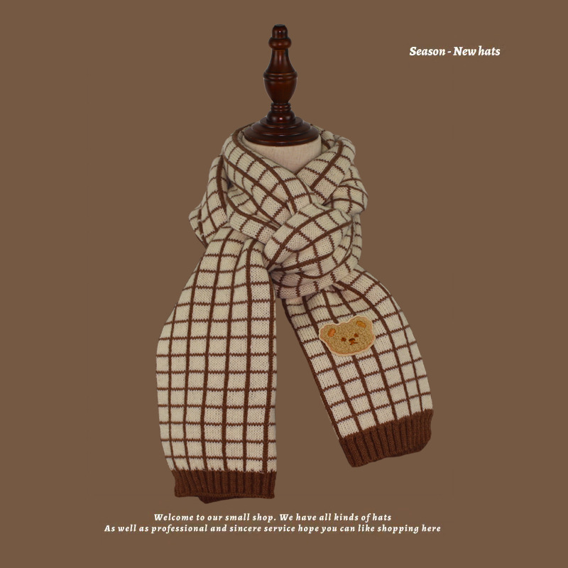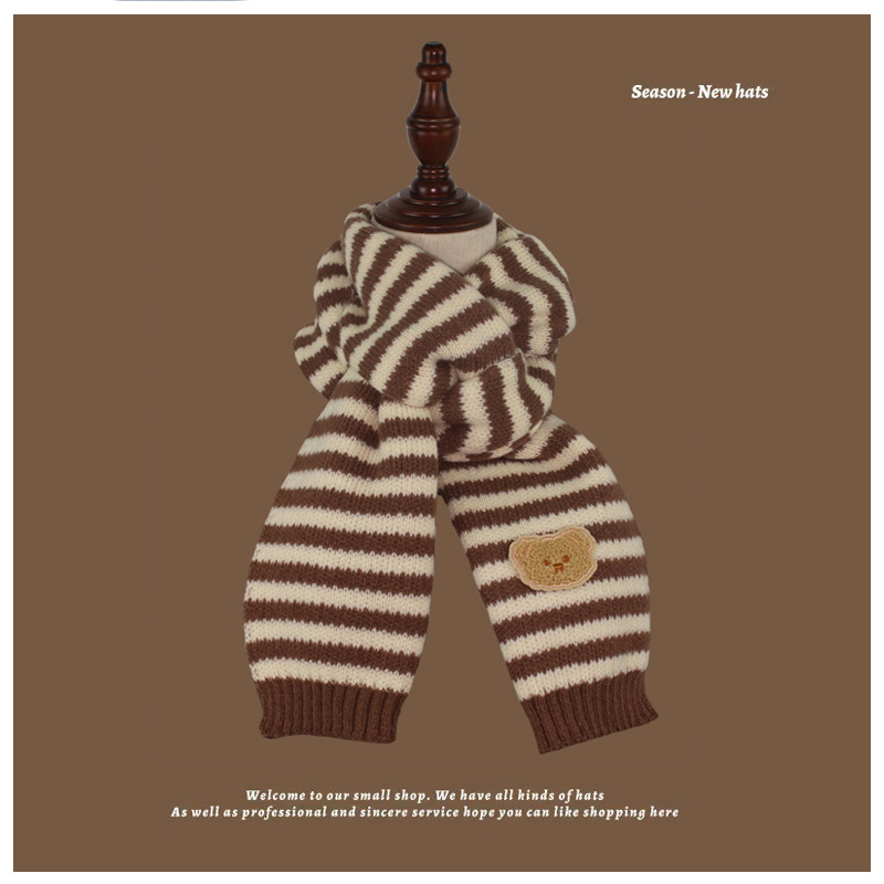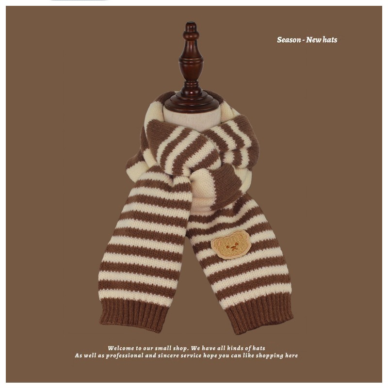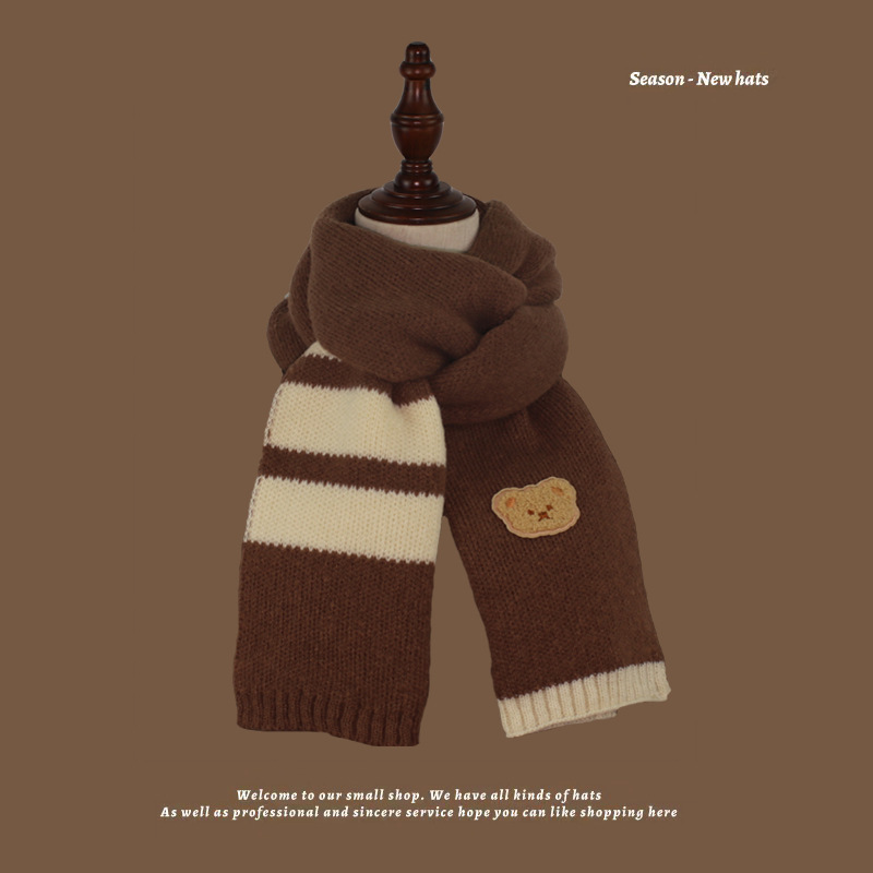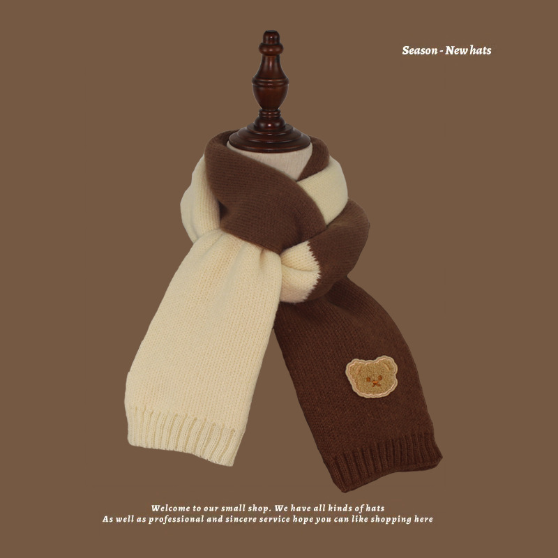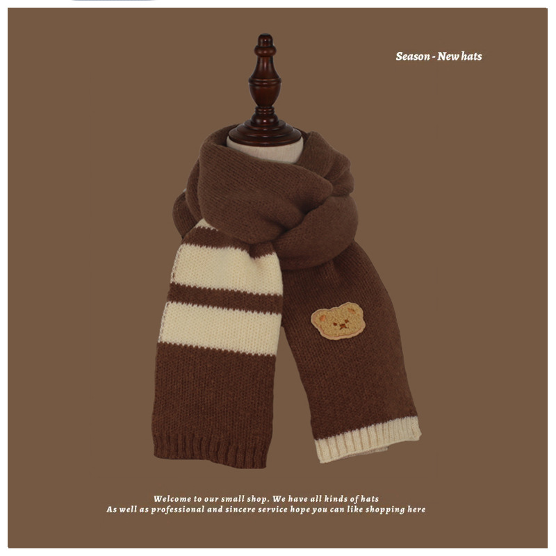 가을과 겨울 다크 브라운 니트 울 스카프 소년과 소녀 아기 스카프 따뜻한 곰 목 보호 어린이 스카프 도매스토어 가기