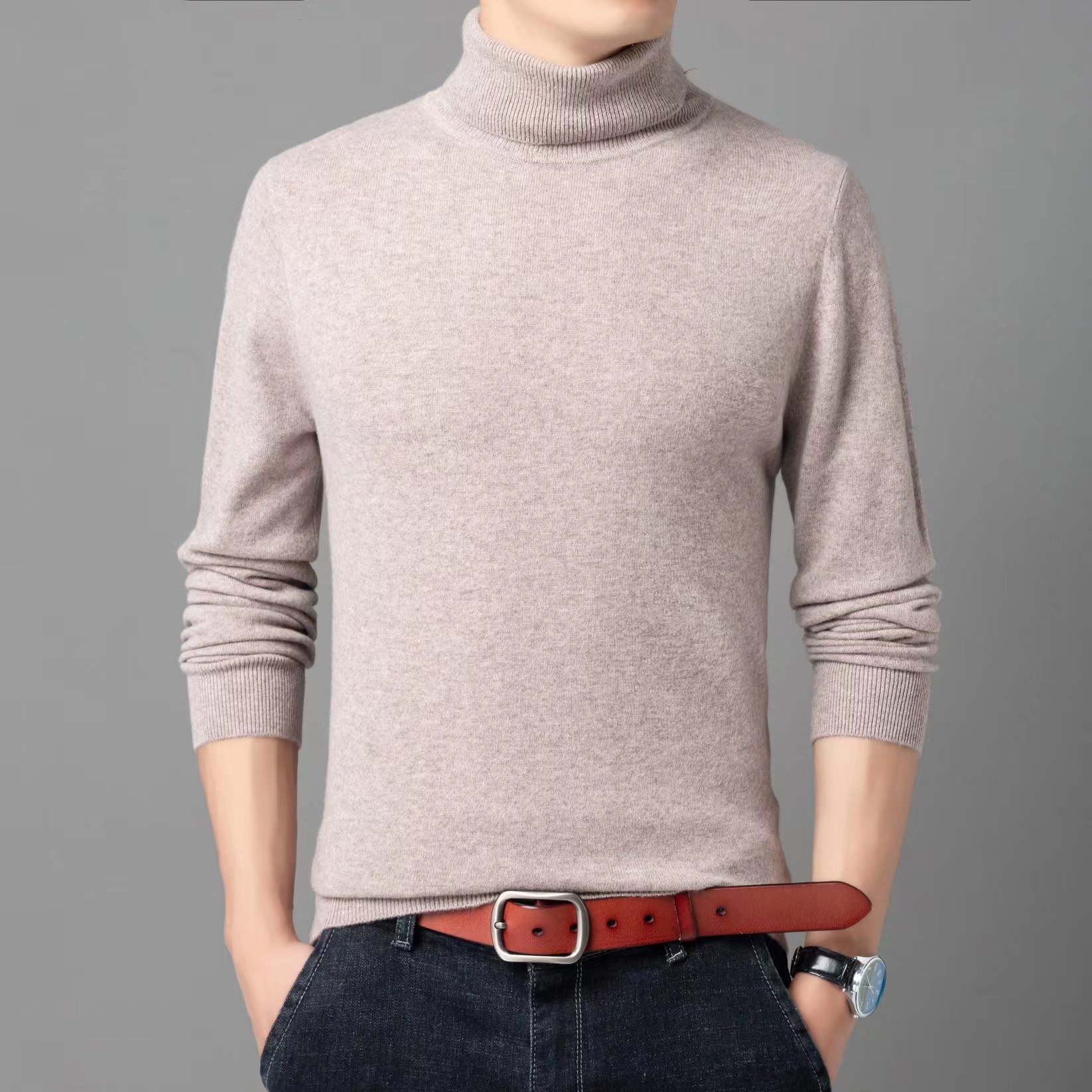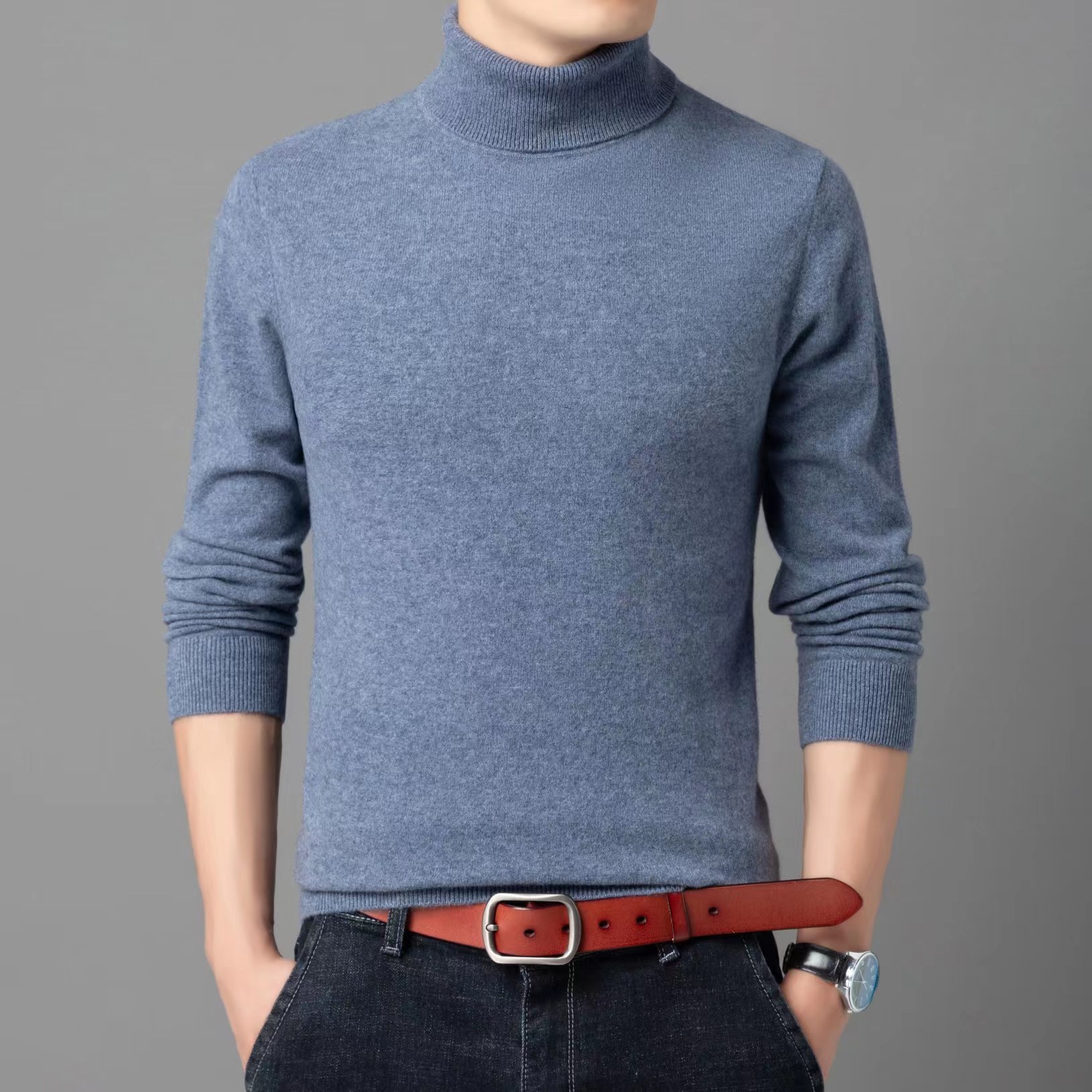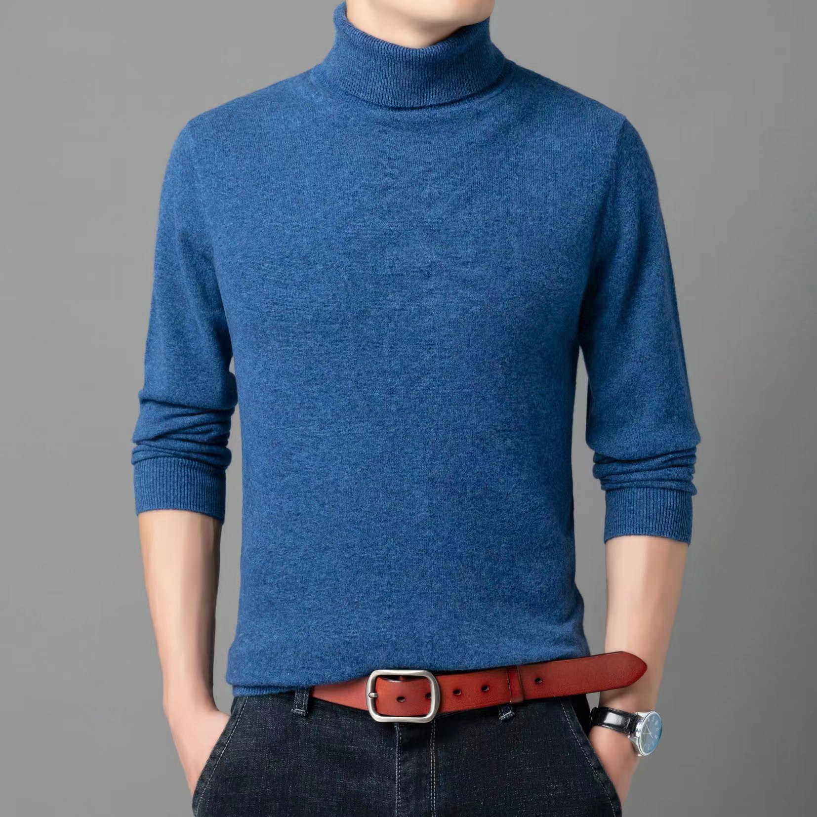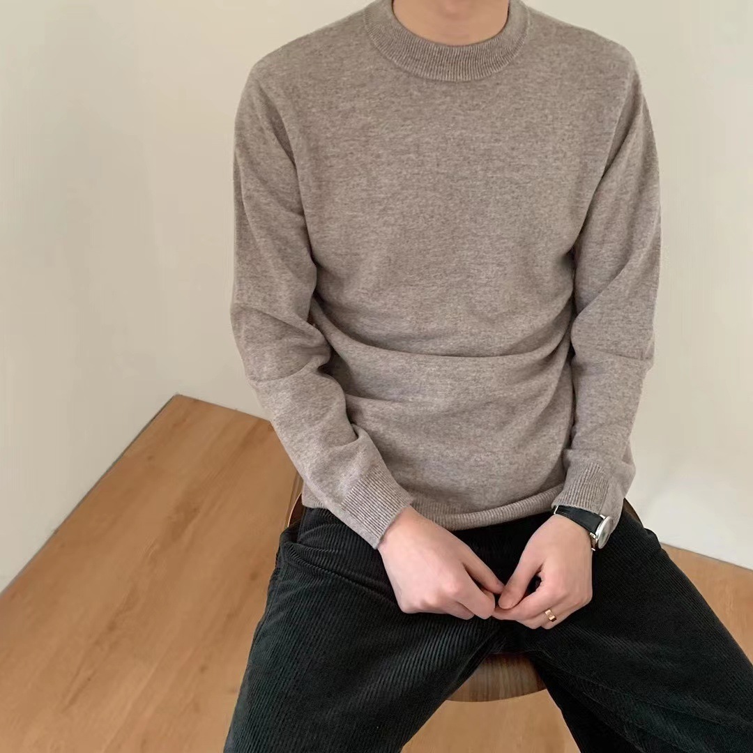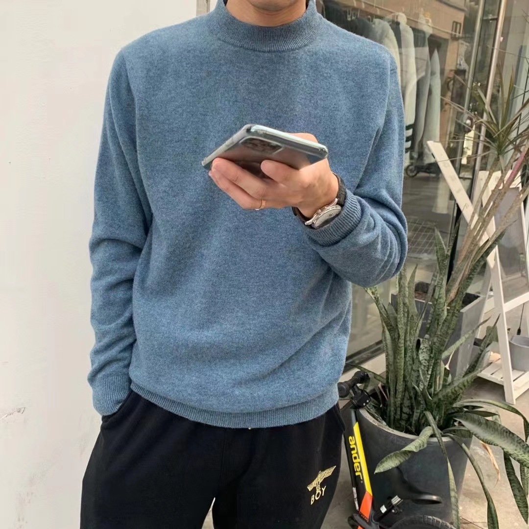 [퀄리티그룹] 남성용 100 모직 스웨터 남성용 풀오버 터틀넥 스웨터 느슨하게 두껍게 한 둥근 목 V넥 스웨터